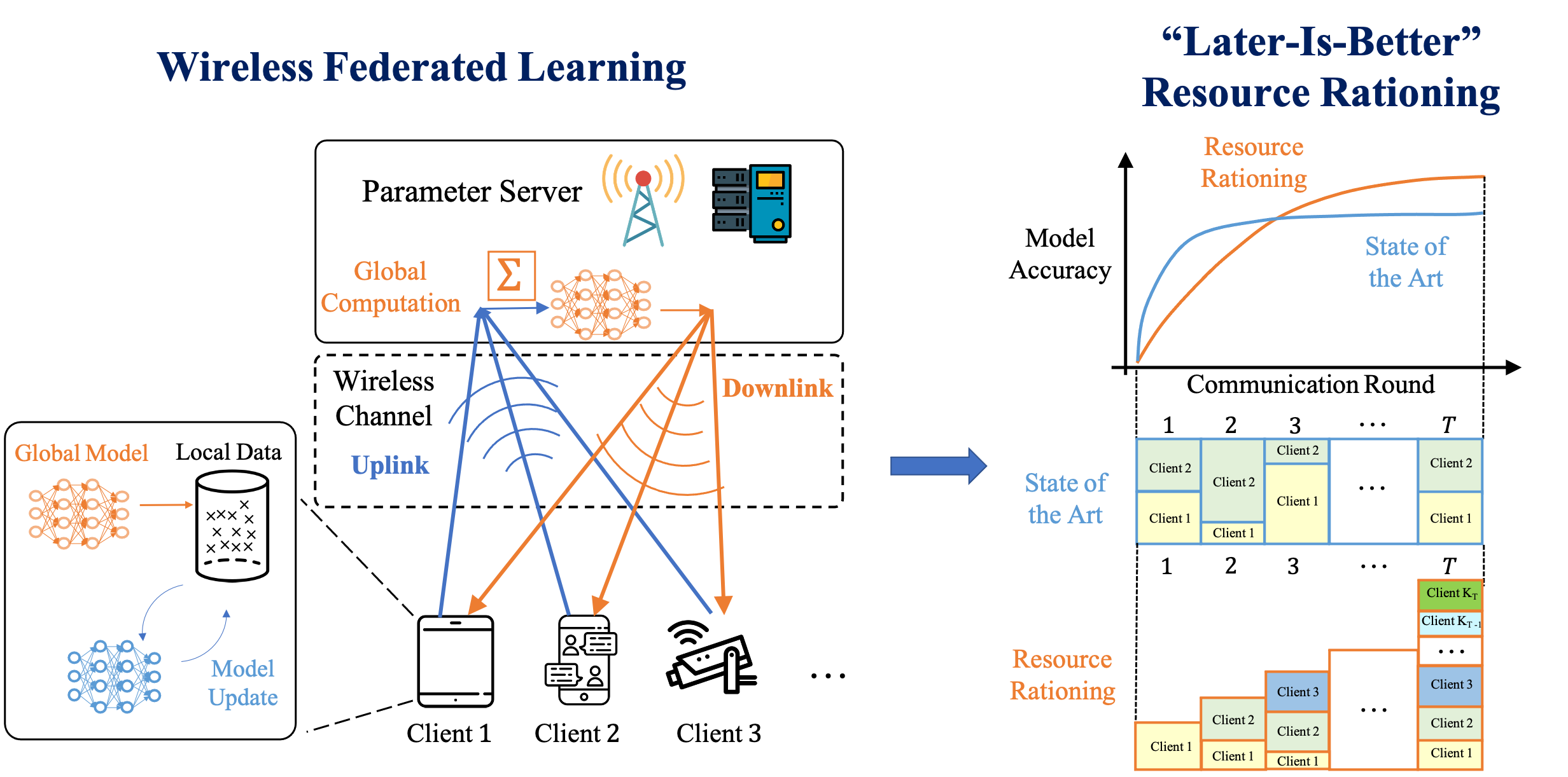 翻译:我们主张一个新的资源分配框架,我们称之为资源配给,用于无线联合学习(FL ) 。 与现有的无线联合学习(FL ) 资源分配方法不同,资源配给侧重于平衡跨学习周期的资源分配方法,以便明确捕捉其对联合学习业绩的集体影响。 这一新框架可以与现有资源分配计划紧密结合,优化FL的融合。 特别是,新的“后更完善”原则处于资源配给的前沿和中心,在无线FL的几例中,这种配给得到了经验验证。 我们还指出了值得追求的技术挑战和研究机会。 资源配给强调将新兴的FL视为具有自身特点的新服务类别的好处,并为这一特定服务设计通信算法。