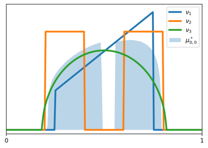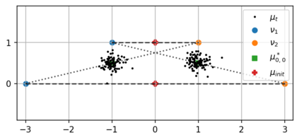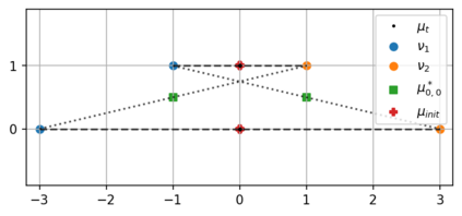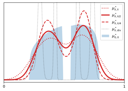 翻译:我们研究了一种正则化 Wasserstein barycenters 的通用公式,该公式具有有利的正则化、逼近、稳定性和(无网格)优化特性。该 barycenter 被定义为唯一的概率测度,它最小化了与一组给定概率测度相关的熵最优传输(EOT)成本之和,再加上熵项。我们将其表示为 $(\lambda,\tau)$-barycenter,其中 $\lambda$ 是内部正则化强度,$\tau$ 是外部正则化强度。这个公式恢复了以前提出的各种选择 $\lambda,\tau \geq 0$ 的 EOT barycenters,并将它们推广了。首先,我们证明了尽管它被 \emph{doubly} 正则化,但它对于 $\tau=\lambda/2$ 是未偏的:对于光滑密度,无(非正则化)Wasserstein barycenter 目标的次优性是熵正则化强度 $\lambda^2$ 的阶,而不是通常的 $\max\{\lambda,\tau\}$。我们讨论了各向同性高斯分布下的这种现象,其中所有 $(\lambda,\tau)$-barycenters 都具有封闭形式。其次,我们证明了对于 $\lambda,\tau>0$,这个 barycenter 具有平滑的密度,并且在边缘扰动下具有强稳定性。特别地,它可以被有效地估计:给定每个概率测量的 $n$ 个样本,它以速度 $n^{-1/2}$ 收敛于集合 barycenter 的相对熵率。最后,该公式自然地适用于基于网格的优化算法:我们提出了一个简单的 \emph{noisy particle gradient descent} 算法,在均场极限下,它全局指数速度收敛于 barycenter。
