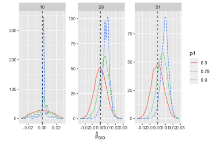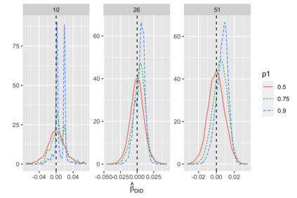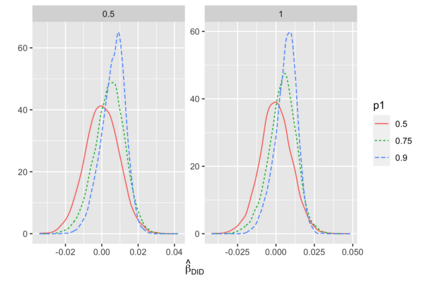 翻译:本文开发了一种基于设计、适合分析准实验环境的不确定性理论,例如差异差异(DID)。 我们框架的一个关键特征是,每个单位都有研究者所不知道的、可能与潜在结果相关的特殊治疗概率。 我们为共同估计者(包括DID)的偏差得出公式,并提供了一种条件,在这种条件下,它们对于不可弥补的因果关系(例如,与ATE或ATT的类比)是不带偏见的。 我们还进一步表明,当有限的人口数量庞大时,常规标准错误是有效的,但通常对估计者在随机分布上的差异进行保守的估计。我们框架的一个有趣的特征是,当处理可能性不同单位时,常规标准错误会变得更加保守。这种保守性有助于(部分地)在估计者有偏差时减轻信任期的底线间隔。因此,DID估计者的信任度可以纠正平均治疗效果的覆盖面,而对于实际处理的统计标准差则通常保守性的估计。我们框架的一个有趣的特征是,如果平行的市场趋势确实能维持我们这些平行的汇率,那么,我们就可以对这些平行的汇率进行共同的汇率分析。