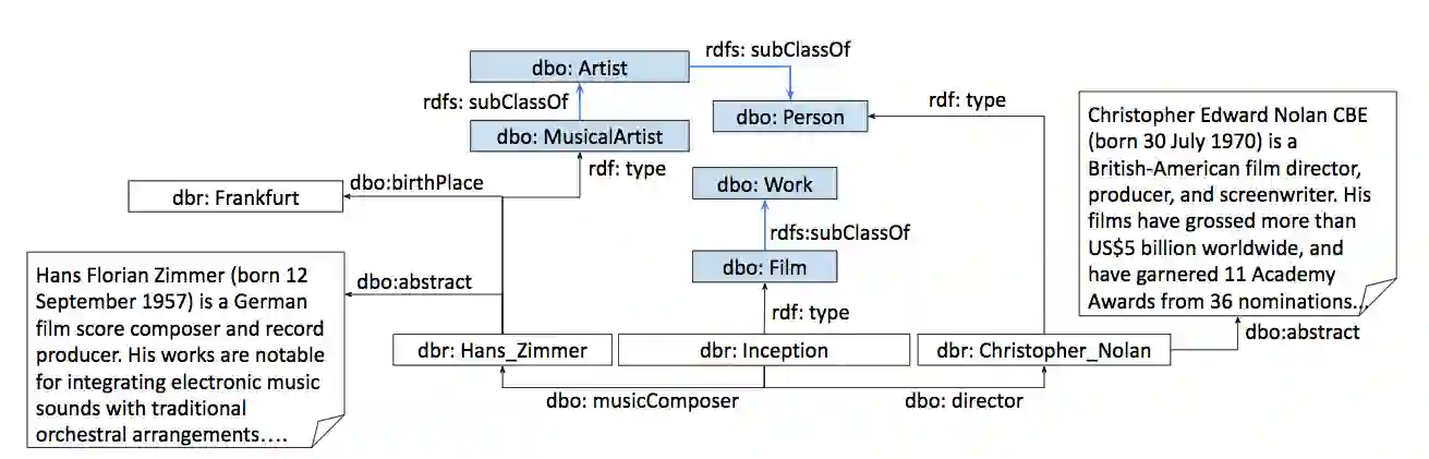翻译:DBpedia、Freebase等知识图(KGs)中的实体类型信息往往因自动生成或人为校正而不完整。实体键入是指定或推断KG中实体的语义类型的任务。本文展示了\ textit{GRAND},这是实体在RDF2vec和文本实体描述中利用不同图形行走策略进行输入的新办法。RDF2vec首先生成图形散行,然后使用语言模型为图表中的每个节点获得嵌入。本研究显示,行走生成战略和嵌入模型对实体打字任务的业绩有重大影响。拟议的方法超越了基准数据集DBpedia和FIGER的基准方法,用于实体在KGs打入精细和粗粗粗的分类。结果显示,有识的RDF2vec变量与文本实体描述的背景嵌入组合了最佳结果。