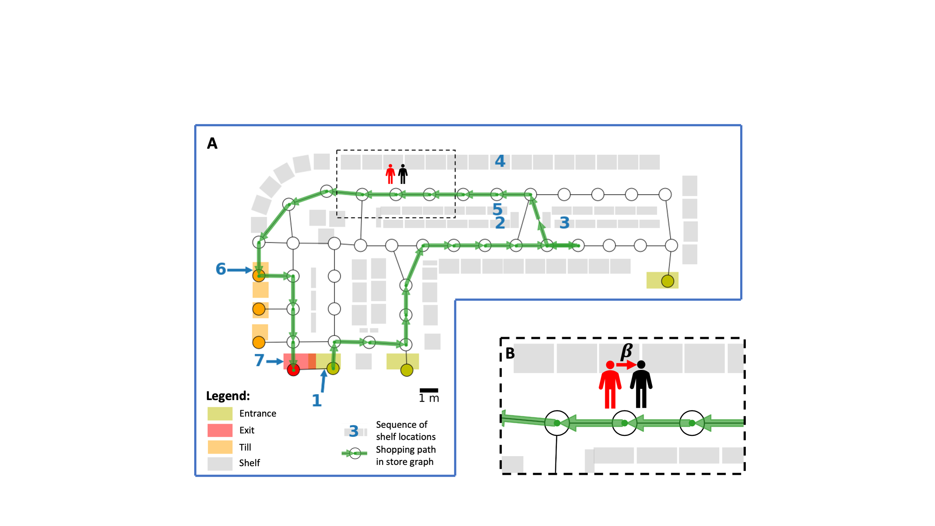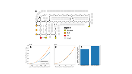 翻译:自2020年3月初COVID-19爆发以来,联合王国超市实施了不同的政策,以减少商店内病毒传播,保护顾客和工作人员,例如限制商店内的最大客户数量,改变商店布局,或强制实施表面覆盖政策。为了定量评估这些缓解方法,我们根据客户在感染性顾客附近花费的时间,以简单的病毒传播模式为基础,在超市(我们代表一个网络)制定一个基于代理的客户流动模式。我们将我们的模型应用于合成商店和购物数据,以表明人们如何利用我们的模型估计由于商店内人与人接触而感染的人数,以及如何模拟不同的商店干预措施。源代码公开发布在https://github.com/fabiannying/covid19-超级市场胶囊中。我们鼓励零售商利用该模型找到最有效的商店政策,减少商店内的病毒传播,从而保护顾客和工作人员。