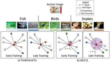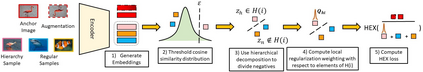 In this paper, we propose an algorithm that can be used on top of a wide variety of self-supervised (SSL) approaches to take advantage of hierarchical structures that emerge during training. SSL approaches typically work through some invariance term to ensure consistency between similar samples and a regularization term to prevent global dimensional collapse. Dimensional collapse refers to data representations spanning a lower-dimensional subspace. Recent work has demonstrated that the representation space of these algorithms gradually reflects a semantic hierarchical structure as training progresses. Data samples of the same hierarchical grouping tend to exhibit greater dimensional collapse locally compared to the dataset as a whole due to sharing features in common with each other. Ideally, SSL algorithms would take advantage of this hierarchical emergence to have an additional regularization term to account for this local dimensional collapse effect. However, the construction of existing SSL algorithms does not account for this property. To address this, we propose an adaptive algorithm that performs a weighted decomposition of the denominator of the InfoNCE loss into two terms: local hierarchical and global collapse regularization respectively. This decomposition is based on an adaptive threshold that gradually lowers to reflect the emerging hierarchical structure of the representation space throughout training. It is based on an analysis of the cosine similarity distribution of samples in a batch. We demonstrate that this hierarchical emergence exploitation (HEX) approach can be integrated across a wide variety of SSL algorithms. Empirically, we show performance improvements of up to 5.6% relative improvement over baseline SSL approaches on classification accuracy on Imagenet with 100 epochs of training.