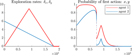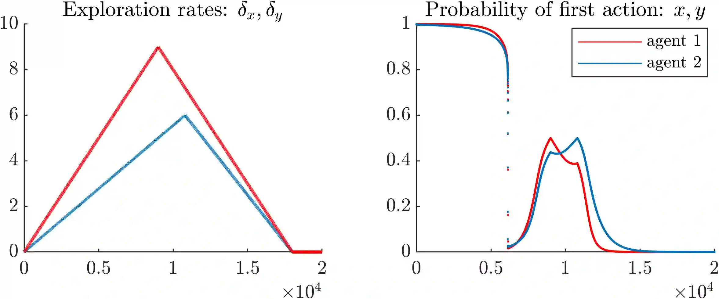翻译:探索探索开发是多试剂学习(MAL)中一个强大而实用的工具,然而,它的效果远未被理解。为了朝这个方向取得进展,我们研究一个平稳的Q-学习模拟。我们首先显示我们的学习模式有很强的理论理由,是研究探索-开发的最佳模式。具体地说,我们证明,顺利的Q-学习在任意游戏中,对明确体现游戏和勘探成本平衡的成本模型(MAL)感到遗憾,而且它总是会与一套四等反应平衡(QRE)(QRE)(QRE)(QRE)(QRE)(QRE)(QRE))(QRE))(QRE)(QRE))(QRE)(QRE)(QRE)(QRE)(Q-L)(Q-L)(Q-L)(M)(M) (M) (M) (M) (M) (M) (M) (O) (O) (O) (O(Q) (I) (O) (I) (I) (I) (O(S) (O) (O) (O) (S) (O) (I) (I) (I) (I) (I) (I) (I) (I) (I) (I) (I) (I) (I) (I) (I) (I) (I) (I) (O) (O) (O) (O) (I) (I) (I) (I) (I) (I) (I) (I) (I) (I) (I) (I) (I) (I) (I) (I) (I) (I) (I) (I) (S) (I) (I) (I) (I) (I) (I) (I) (I) (I) (I) (I) (I) (I) (I) (I) (I) (I) (I) (I) (I) (I) (I) (I) (I) (I) (I) (I) (I) (I) (I) (I) (I) (I) (I) (I) (I) (I) (I) (I) (I) (I) (I)