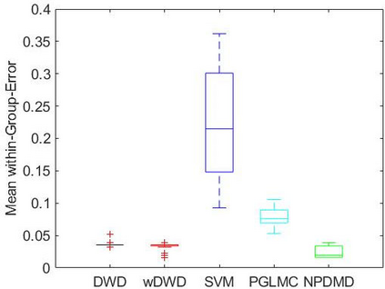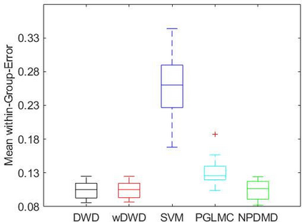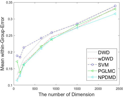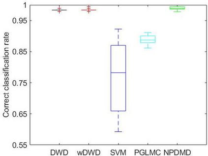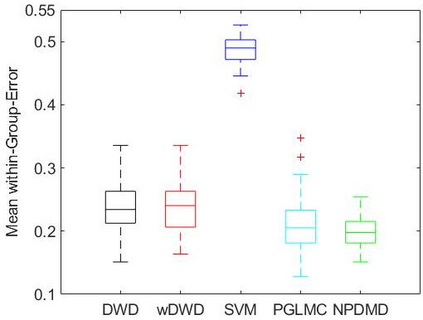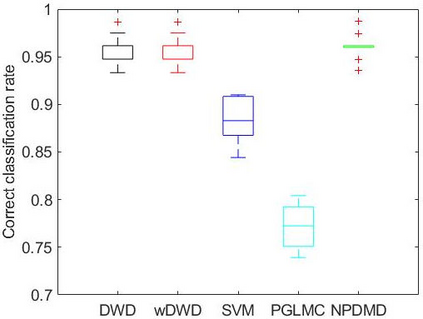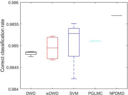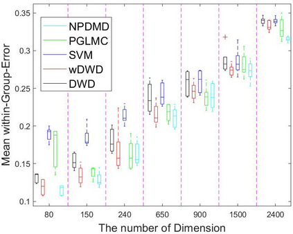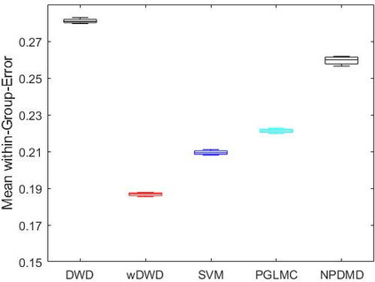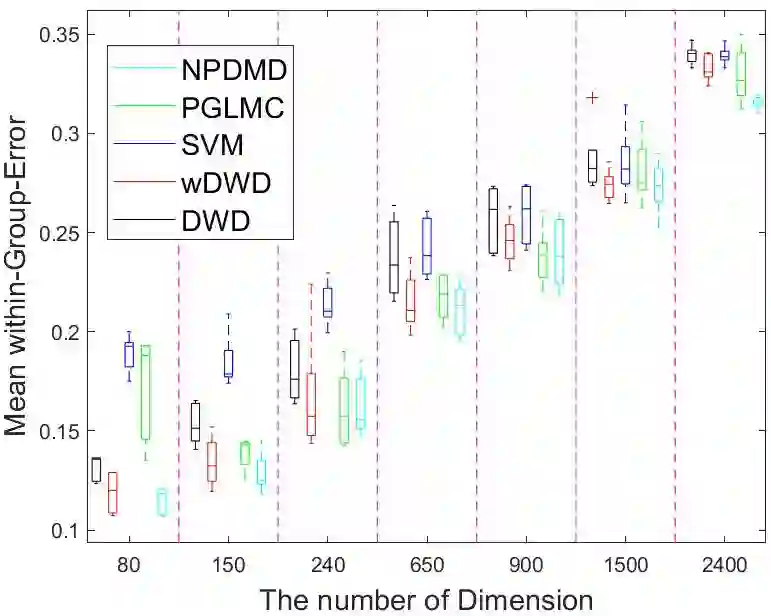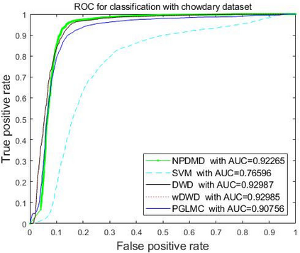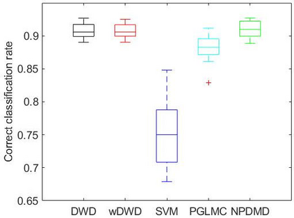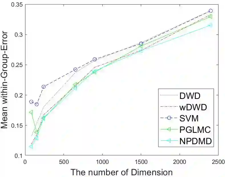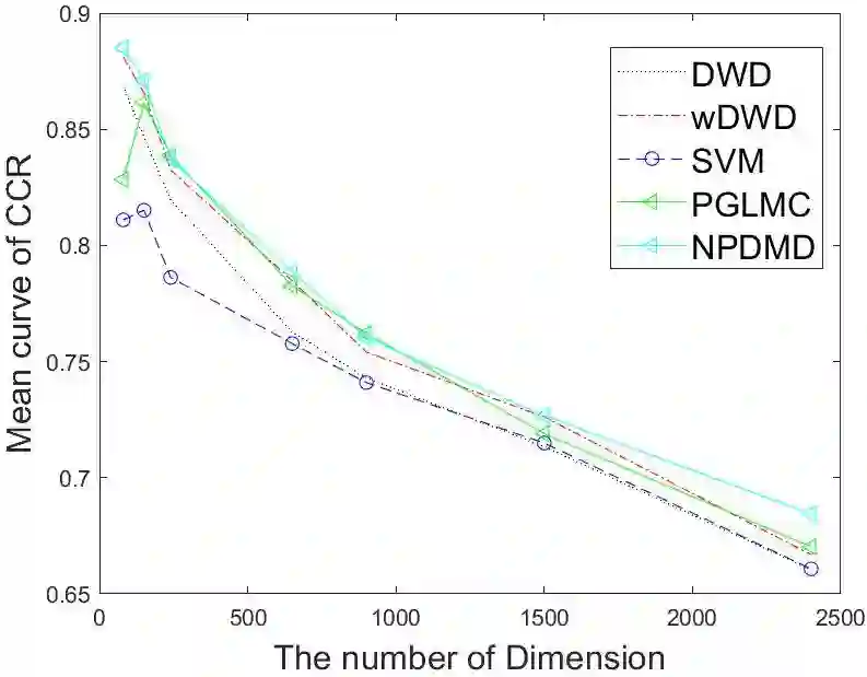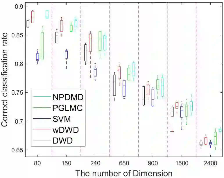 翻译:基因表达分析或计算机视觉等不同领域的大量应用,如基因表达分析或计算机视觉,经过高维低抽样规模(HDLSS)的数据集,这给标准统计和现代机器学习方法带来了巨大的挑战。在本文件中,我们提出了关于HDLSS的新分类标准,即容忍性相似性,强调在等级分离前提下尽可能扩大类内差异。根据这一标准,设计了一个新型线性双轨分类器,由无分离数据最大分散分类器(NPDMD)表示。NDDMD的目标是找到一个预测方向,使所有培训样品尽可能在大间隔内分布。NDDMD具有与最新分类方法相比的若干特性。首先,HDLSS工作效果良好。第二,将抽样统计信息和地方结构信息(支持矢量)结合到客观功能中,以找到在整个特征空间预测方向的解决方案。第三,NDDMDM的目标是在低维度空间找到一个面面面最小矩阵,在最短的矩阵中,在真实的基数矩阵应用中,在真实的模型中,在最精确的模型中进行。