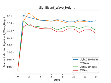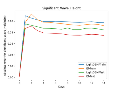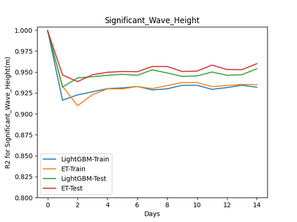 翻译:本文建议了一种基于预测大洋水域重大波高的“额外树”算法的机器学习方法。为了从具有点测量的CDIP浮标中得出多种特征,我们先是先播各种参数,然后每隔30分钟预报。提议的算法有散射指数(SI)、比亚斯、相交系数、根正正方差错误(RMSE)分别为0.130、0.002、0.97和0.14,分别用于提前一天预测和0.110、0.001、0.98和0.122,分别用于测试数据集的提前14天预测。虽然其他最先进的方法只能预测到前面120小时,但我们将它进一步扩展至14天。这14天的算法不是预测极限,而是由于我们实验的设置而产生。我们提议的设置包括光谱特征、hv区交叉校准和严格的QC标准。提议的算法比通常用于提前一天进行重大浪高预报的状态方法要好得多。此外,对于远一天预测来说,更先进的其他最先进方法只能预测120小时,我们只能将它延长到14天。这14天。这14天的14天的14天的限制不是预测期限,但这14天的限期,但这14天的限期是由于我们的实验性极限,但是由于我们的实验而产生。我们提议的海洋早期预测方法的更长时间的改进了,因此,因此可以使远的测算法可以使远的测算法的测得更长的年的测得。
