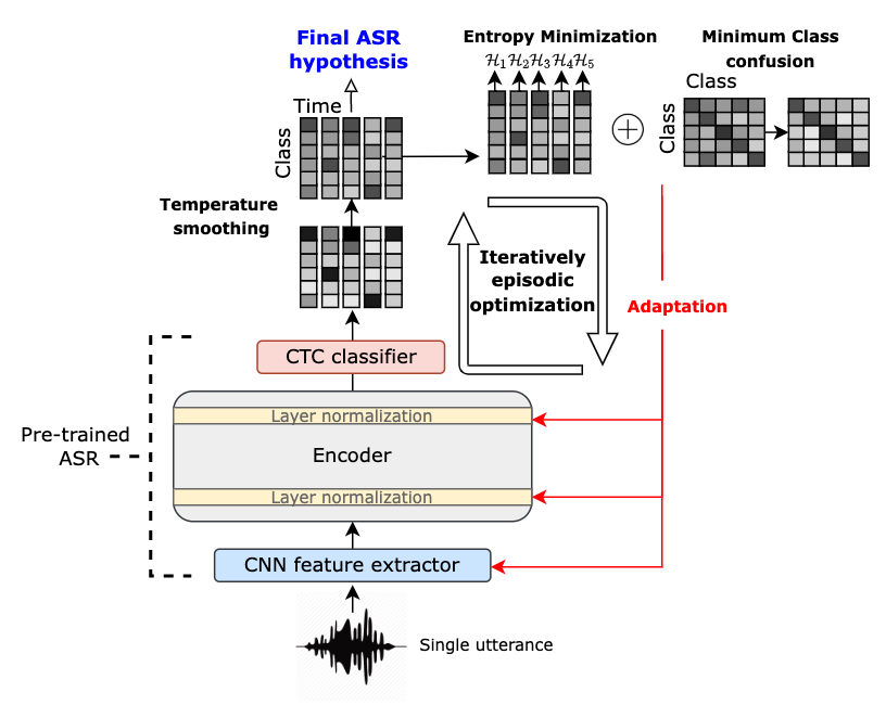 翻译:虽然近年来基于深层次学习的端到端自动语音识别(ASR)表现显著,但在从不同数据分布中提取的测试样品上却出现了严重的性能倒退,以前在计算机视野领域探索过的测试时间适应(TTA)旨在调整在源域方面受过培训的模型,以便对测试样品作出更好的预测,这些样品往往是在外部,没有访问源数据。在这里,我们建议为ASR建立单一-异常测试时间适应(SUTA)框架,这是我们最了解的关于ASR的首次TTA研究。单价TA是一种更现实的设定,它不假定测试数据是从相同的分布中取样的,不因收集成套适应数据而延迟需求推论。SUTA由不受监督的目标组成,而没有获得有效的适应战略。经验性结果表明,SUTA有效改进了在多个局外目标公司和内部测试样品上评估的源ASR模型的性能。