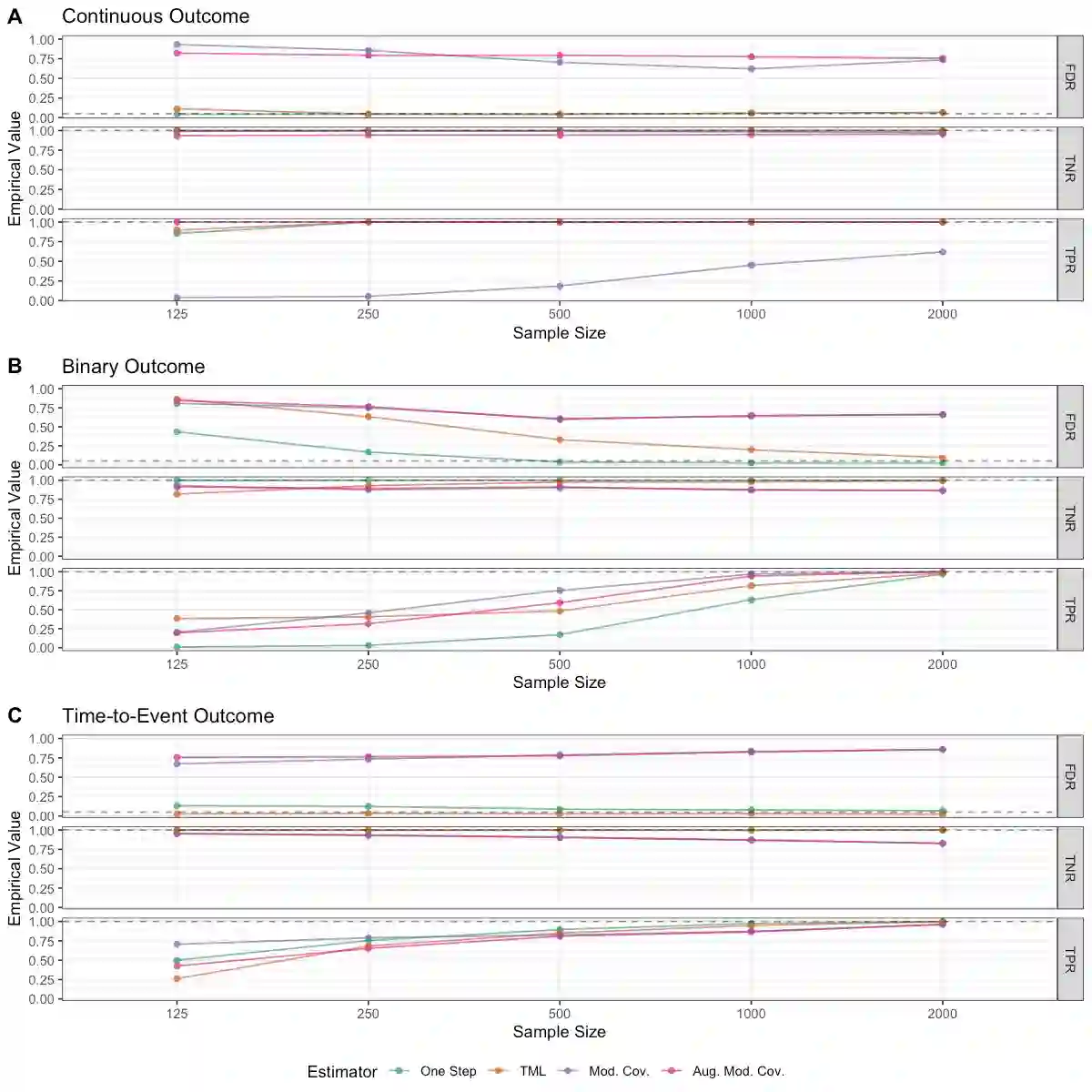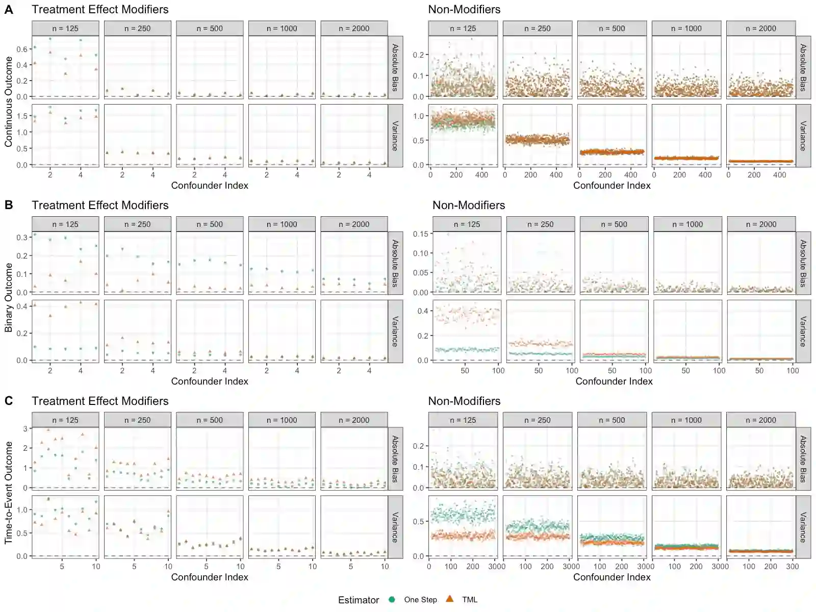 翻译:异质性处理效应是由处理效应变量引起的,预处理协变量修改了一个处理对结果的影响。目前揭示这些变量的方法仅限于低维数据、弱相关协变量的数据或按参数过程生成的数据。我们通过开发一个框架解决了这些问题,该框架可应用于具有任意相关结构的高维数据,定义模型无关的处理效应变量重要性参数,并推导出这些参数的一步、估计方程和定向最大似似然估计器,并建立了这些估计器的渐近性质。这个框架展示了为连续、二进制和时间至事件结果的二进制处理的数据生成过程定义变量重要性参数,并指定相应的多重稳健和渐近线性估计器。仿真实验表明,这些估计器的渐近保证在观测和随机研究的实际样本量中得到了实现。该框架应用于为评估单克隆抗体治疗对乳腺癌患者无病生存期影响的临床试验收集的基因表达数据。预测可能具有处理效应修改潜力的基因以前已与乳腺癌联系起来。这个方法的开源的 R 软件包unihtee可在GitHub上获取,网址为: https://github.com/insightsengineering/unihtee。