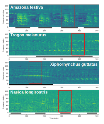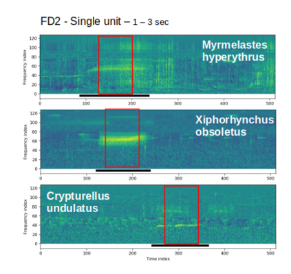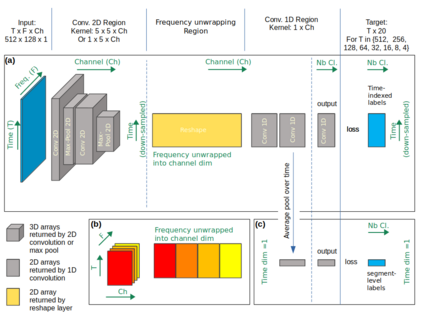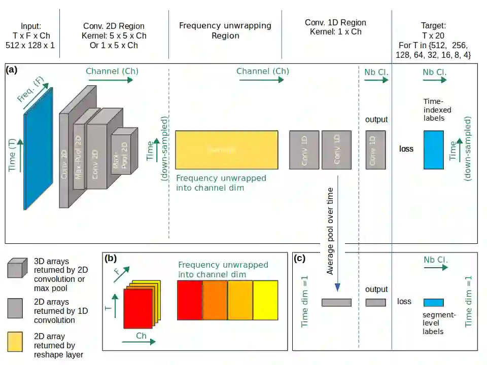 Automated classification of animal sounds is a prerequisite for large-scale monitoring of biodiversity. Convolutional Neural Networks (CNNs) are among the most promising algorithms but they are slow, often achieve poor classification in the field and typically require large training data sets. Our objective was to design CNNs that are fast at inference time and achieve good classification performance while learning from moderate-sized data. Recordings from a rainforest ecosystem were used. Start and end-point of sounds from 20 bird species were manually annotated. Spectrograms from 10 second segments were used as CNN input. We designed simple CNNs with a frequency unwrapping layer (SIMP-FU models) such that any output unit was connected to all spectrogram frequencies but only to a sub-region of time, the Receptive Field (RF). Our models allowed experimentation with different RF durations. Models either used the time-indexed labels that encode start and end-point of sounds or simpler segment-level labels. Models learning from time-indexed labels performed considerably better than their segment-level counterparts. Best classification performances was achieved for models with intermediate RF duration of 1.5 seconds. The best SIMP-FU models achieved AUCs over 0.95 in 18 of 20 classes on the test set. On compact low-cost hardware the best SIMP-FU models evaluated up to seven times faster than real-time data acquisition. RF duration was a major driver of classification performance. The optimum of 1.5 s was in the same range as the duration of the sounds. Our models achieved good classification performance while learning from moderate-sized training data. This is explained by the usage of time-indexed labels during training and adequately sized RF. Results confirm the feasibility of deploying small CNNs with good classification performance on compact low-cost devices.