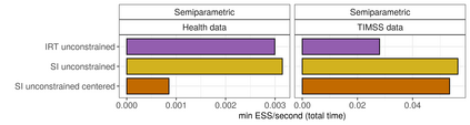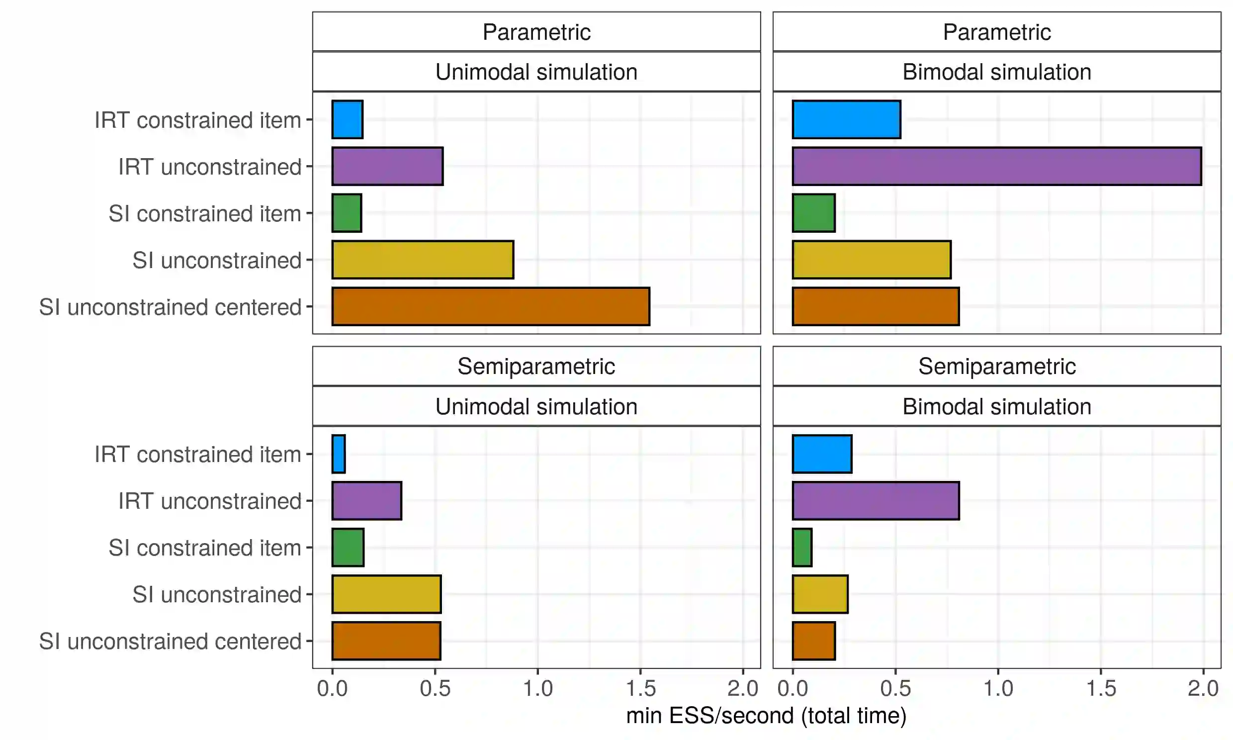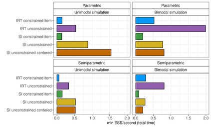 翻译:在分析问卷数据时,广泛使用项目反应理论(IRT)模型来获取可解释的推断,将二进制反应缩小到连续结构中。通常,这些模型依赖对所研究人群中个人潜在特征特征的常态假设,但这一假设不现实,可能导致有偏差的结果。我们放松正常性假设,将灵活的迪里赫莱特进程混合物模型视为在分配个别潜在特征之前的非参数。虽然以前在文献中曾考虑过这一方法,但对此类模型或一般软件工具缺乏全面研究。为填补这一空白,我们展示了等级统计模型的NNNNBLB框架如何能够在潜在特征分布上使用灵活的前科,具体地说明Drichlet进程混合物在双参数后勤(2PL)IRT模型中的使用情况。我们研究不同的制约因素如何导致模型的可识别性,并就先前的分布提供指导。我们利用模拟和现实世界数据,对Markov链 Monte Car Festior 取样效率进行深入的研究。为若干取样战略提供了一种实用性的能力。我们得出结论认为,功能性框架的利用这种半参数框架可以作为基础,从而推估测测测测。