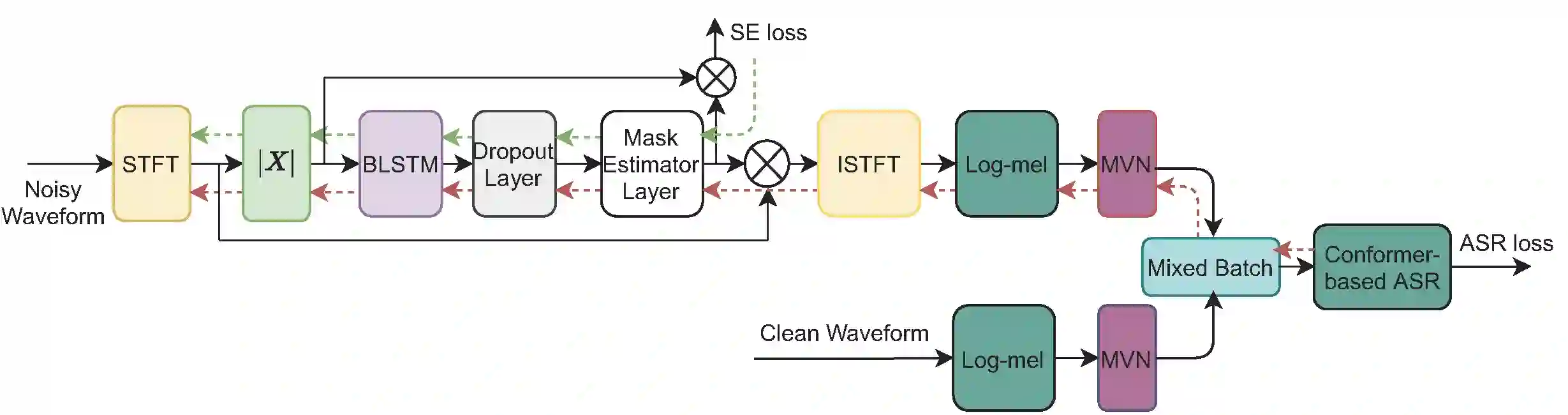 翻译:为了在无线电通信条件下实现稳健的端到端自动语音识别(E2E ASR),我们提议采用基于多任务的方法,将语音增强模块作为前端和E2E ASR模型作为本文件的后端,作为前端和E2E ASR模型作为本文件的后端。拟议方法的一个优点是,整个系统可以从零开始接受培训。与以前的工作不同,这里的两个组成部分都不需要分别进行训练前和微调程序。通过分析,我们发现拟议方法的成功在于以下几个方面。首先,多任务学习至关重要,即SE网络不仅学习制作更多的智能语言,还旨在生成有利于承认的语音。第二,我们还发现从噪音中保留的语音阶段对于改进ASR的性能至关重要。第三,我们提出一种双频道数据增强培训方法,以获得进一步的改进。我们把清洁和强化的语音结合到整个系统的培训。我们评估了拟议的RATS英语数据集方法,实现了相对的WER降幅4.6%,同时采用联合培训方法,将WER的相对降幅率方法,将WER数据降为11.1%。