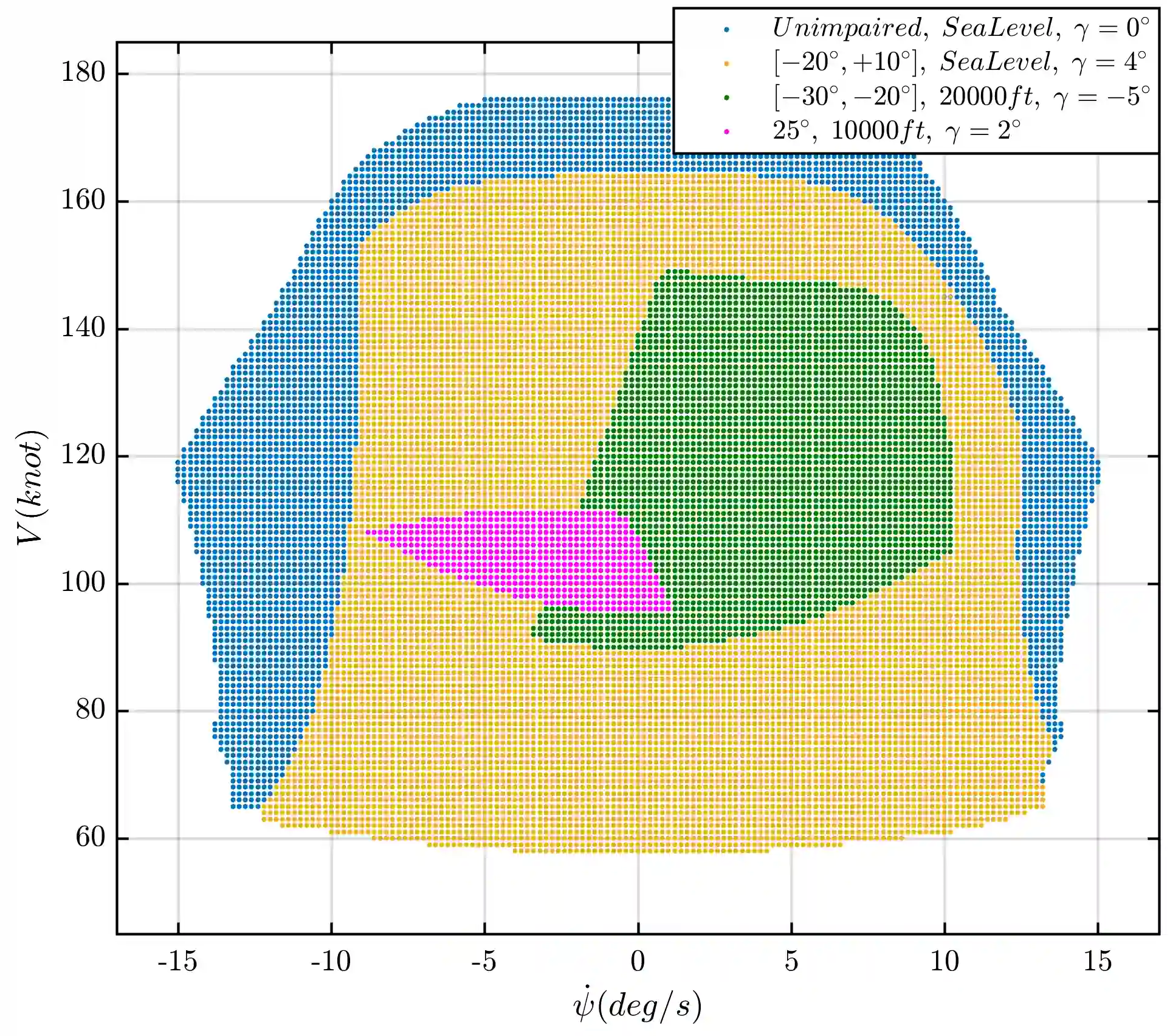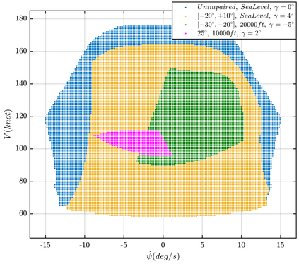 翻译:飞机失灵会改变飞机的动态,并导致飞行信封变化。这种信封变异是非线性且通常不可预测的,因为飞行员受飞机复杂动态的制约。因此,为了防止在飞行中失去控制,对于实际预测由于任何优先未知失灵程度而受损的飞机的飞行信封变异至关重要。本文用线性和非线性最低平方估计方法,调查操纵飞行信封及其中机器人内三角点数的可预测性。为了这样做,将开发出各种多球模型和基于超斜对照功能的非线性模型,并进行比较,其中纳入信封变的影响因素,作为输入量和估计的机器人,以及在任何预期失灵程度调整飞行信封的三点数目。结果显示,以多球和高叶色函数为基础的模型都能够以精确度预测受损的战斗信封变异。此外,还表明,最佳多球型模型的回归方格能够直接评估受损的飞机的飞行信封收缩和偏差对具体参数的飞行失灵和飞行状态的敏感度。
