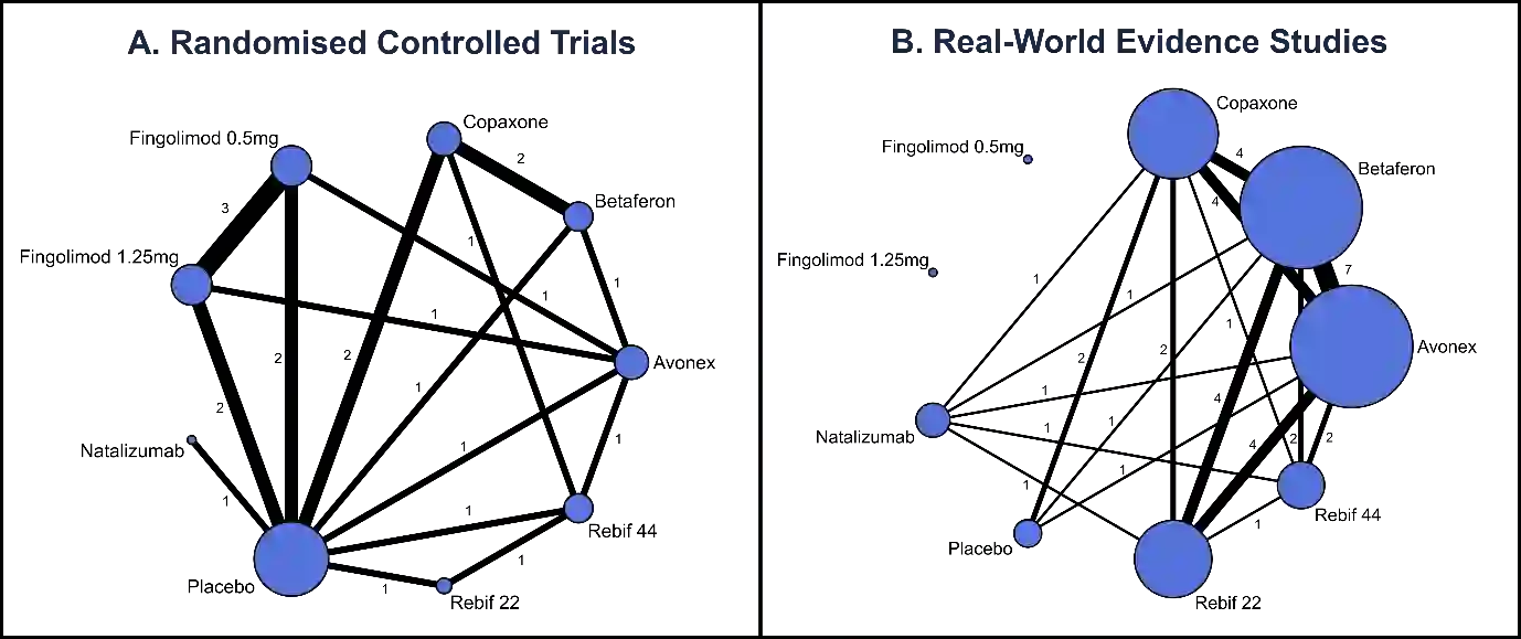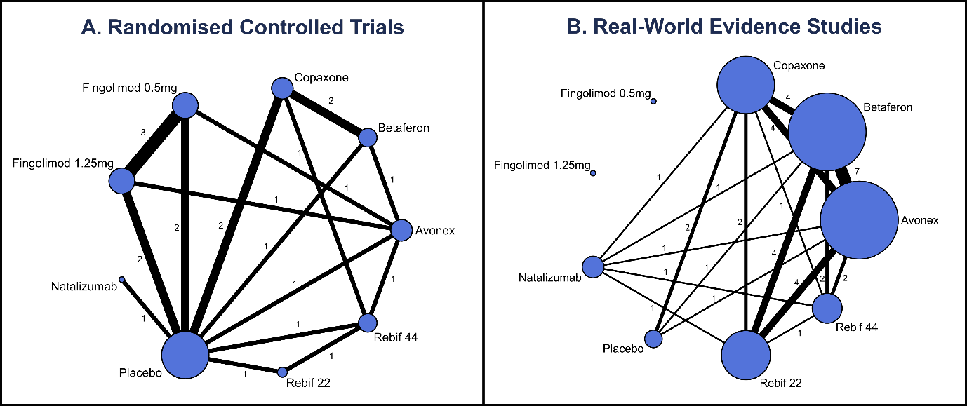 Background: Network Meta-Analysis (NMA) is a key component of submissions to reimbursement agencies world-wide, especially when there is limited direct head-to-head evidence for multiple technologies from randomised controlled trials (RCTs). Many NMAs include only data from RCTs. However, real-world evidence (RWE) is also becoming widely recognised as a valuable source of clinical data. We investigate methods for the inclusion of RWE in NMA and its impact on the uncertainty around the effectiveness estimates. Methods: A range of methods for inclusion of RWE in evidence synthesis, including Bayesian hierarchical and power prior models, were investigated by applying them to an example in relapsing remitting multiple sclerosis. The effect of the inclusion of RWE was investigated by varying the degree of down weighting of this part of evidence by the use of a power prior. Results: Whilst the inclusion of the RWE led to an increase in the level of uncertainty surrounding effect estimates in this example, this depended on the method of inclusion adopted for the RWE. Power prior NMA model resulted in stable effect estimates for fingolimod yet increasing the width of the credible intervals with increasing weight given to RWE data. The hierarchical NMA models were effective in allowing for heterogeneity between study designs; however, this also increased the level of uncertainty. Conclusion: The power prior approach for the inclusion of RWE in NMAs indicates that the degree to which RWE is taken into account can have a significant impact on the overall level of uncertainty. The hierarchical modelling approach further allowed for accommodating differences between study types. Consequently, further work investigating both empirical evidence for biases associated with individual RWE studies and methods of elicitation from experts on the extent of such biases is warranted.