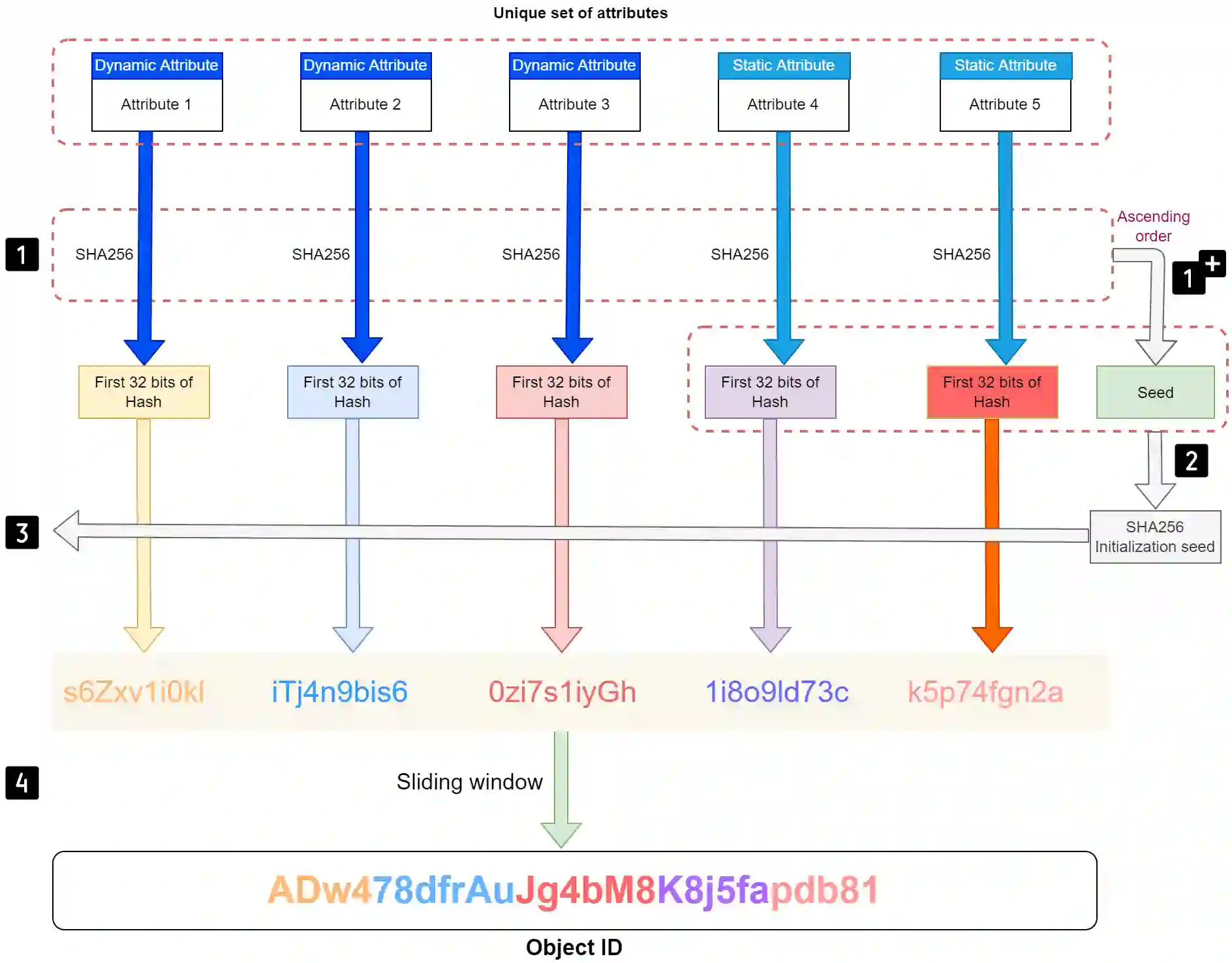With the rising numbers for IoT objects, it is becoming easier to penetrate counterfeit objects into the mainstream market by adversaries. Such infiltration of bogus products can be addressed with third-party-verifiable identification. Generally, state-of-the-art identification schemes do not guarantee that an identifier e.g. barcodes or RFID itself cannot be forged. This paper introduces identification patterns representing the objects intrinsic identity by robust hashes and not only by generated identification patterns. Inspired by these two notions, a collection of uniquely identifiable attributes called quasi-identifiers (QI) can be used to identify an object. Since all attributes do not contribute equally towards an object's identity, each QI has a different contribution towards the identifier. A robust hash developed utilising the QI has been named fuzzified robust hashes (FaR hashes), which can be used as an object identifier. Although the FaR hash is a single hash string, selected bits change in response to the modification of QI. On the other hand, other QIs in the object are more important for the object's identity. If these QIs change, the complete FaR hash is going to change. The calculation of FaR hash using attributes should allow third parties to generate the identifier and compare it with the current one to verify the genuineness of the object.