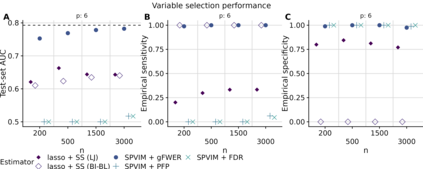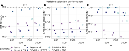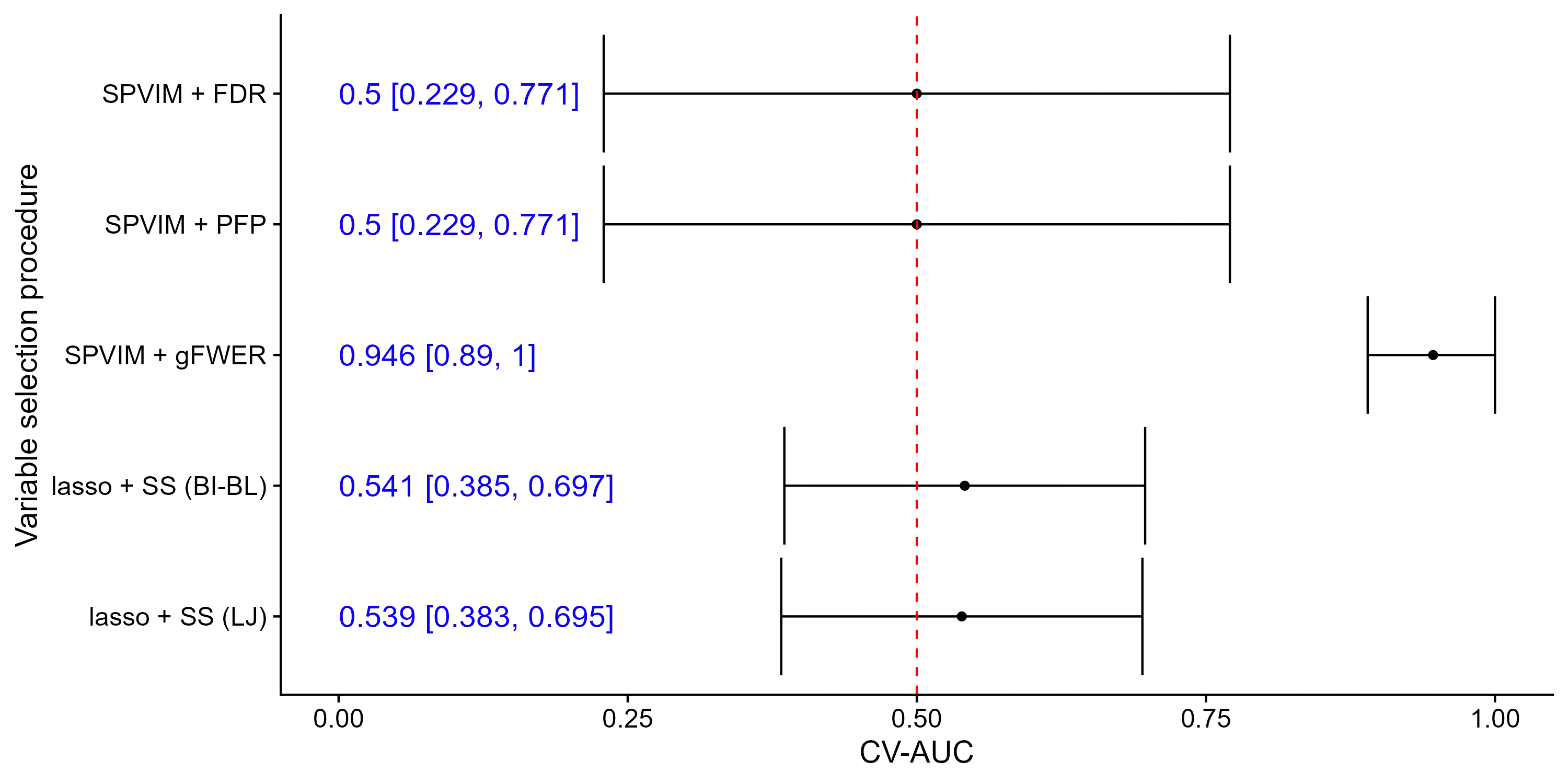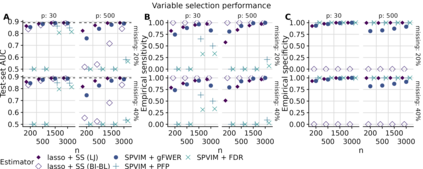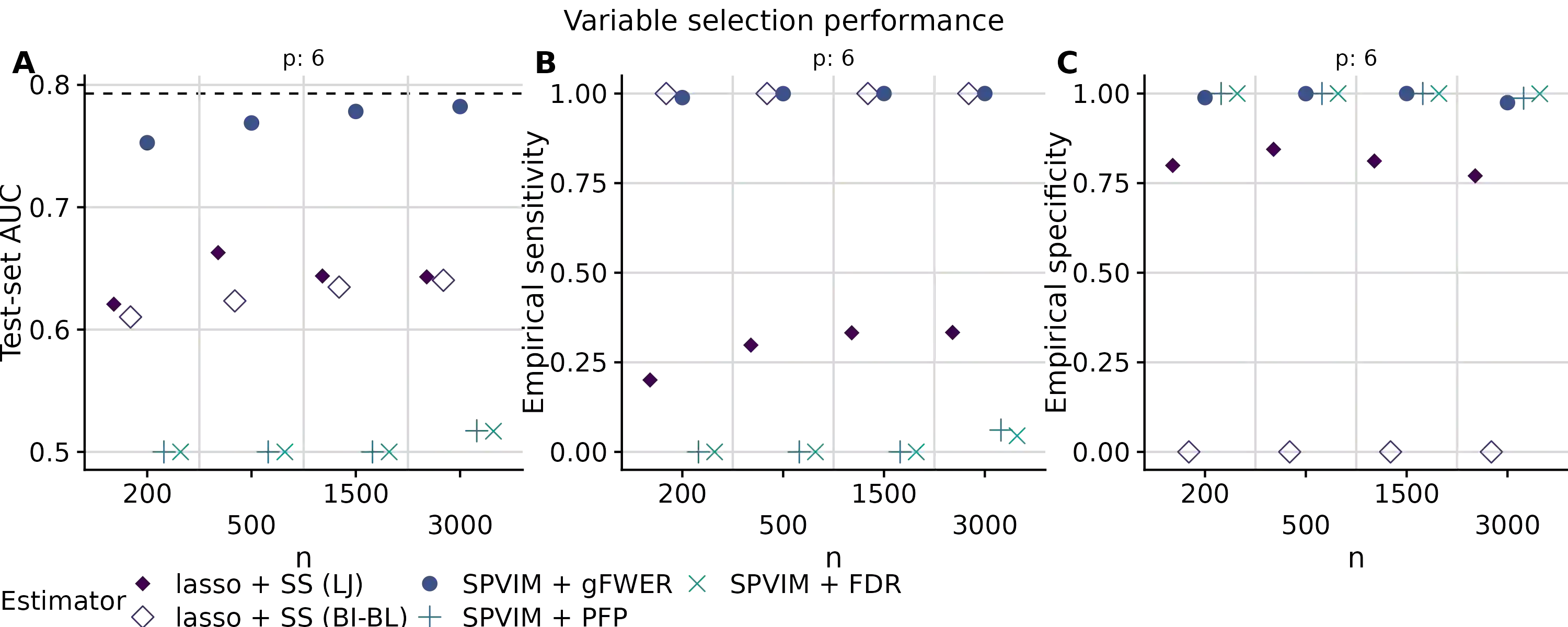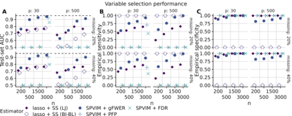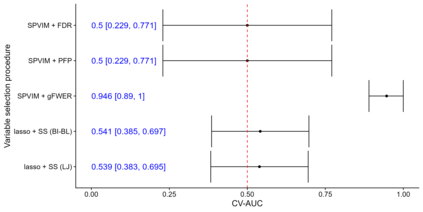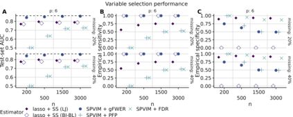 In many applications, it is of interest to identify a parsimonious set of features, or panel, from multiple candidates that achieves a desired level of performance in predicting a response. This task is often complicated in practice by missing data arising from the sampling design or other random mechanisms. Most recent work on variable selection in missing data contexts relies in some part on a finite-dimensional statistical model, e.g., a generalized or penalized linear model. In cases where this model is misspecified, the selected variables may not all be truly scientifically relevant and can result in panels with suboptimal classification performance. To address this limitation, we propose a nonparametric variable selection algorithm combined with multiple imputation to develop flexible panels in the presence of missing-at-random data. We outline strategies based on the proposed algorithm that achieve control of commonly used error rates. Through simulations, we show that our proposal has good operating characteristics and results in panels with higher classification and variable selection performance compared to several existing penalized regression approaches in cases where a generalized linear model is misspecified. Finally, we use the proposed method to develop biomarker panels for separating pancreatic cysts with differing malignancy potential in a setting where complicated missingness in the biomarkers arose due to limited specimen volumes.