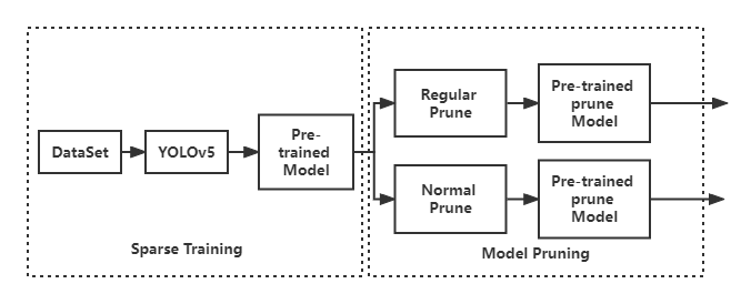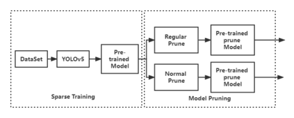 One-stage algorithm have been widely used in target detection systems that need to be trained with massive data. Most of them perform well both in real-time and accuracy. However, due to their convolutional structure, they need more computing power and greater memory consumption. Hence, we applied pruning strategy to target detection networks to reduce the number of parameters and the size of model. To demonstrate the practicality of the pruning method, we select the YOLOv5 model for experiments and provide a data set of outdoor obstacles to show the effect of model. In this specific data set, in the best circumstances, the volume of the network model is reduced by 49.7% compared with the original model, and the reasoning time is reduced by 52.5%. Meanwhile, it also uses data processing methods to compensate for the drop in accuracy caused by pruning.