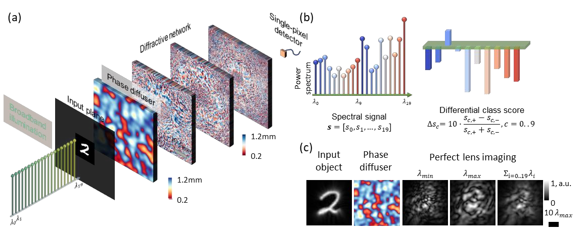 翻译:随机和未知散射介质背后的物体分类为随机和未知散射介质,为计算成像和机器视觉字段规定了一项艰巨的任务。最近的深层次学习方法展示了使用图像传感器收集的散射器扭曲模式对物体进行分类的方法。这些方法要求使用数字计算机的深神经网络进行相对大型的计算。在这里,我们展示了一个全光处理器,通过使用单像素检测到的宽带光化器,通过未知的、随机的散射器直接分类不明物体。一套通过深深层学习优化的透射分吸附式漂异层,形成一个物理网络,通过随机散射器将一个输入对象的空间信息用随机散射器绘制成一个随机散射分散器,以图解散射器为基础,将一个输入光光谱的光谱进行分类。我们从数字上展示了这一框架的准确性,通过随机新扩散器对未知的手写数字进行分类,在培训阶段从未使用过,并实现了88.53%的盲检测精确度。这个单像标全光物体分类系统以随机散射式散射式散射式散射式扩散系统为基础,以被动的散射式散射式散射式散射式散射式散射式散射式扩散扩散扩散扩散扩散扩散扩散扩散扩散扩散扩散扩散扩散扩散扩散,在磁度的电磁度上,可以使电磁磁度光度光度光度光度波波波波波度光度光度波波波波波波波波波波波波波波波波波波波波变增成。