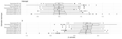 翻译:测量误差是一个普遍的问题,使得分析结果不可靠。测量误差文献包含许多纠正技术,可以大致分为旨在产生完全一致的测算器的技术,以及大致一致的技术。虽然一致性是一种可取的属性,但通常只在具体的模型假设下才能实现。两种技术,即回归校准和模拟外推法,经常在各种参数和半参数环境中使用。然而,在许多环境中,这些方法只是大致一致的。我们对这些更正进行了概括,放松了在复制测量上所作的假设。在常规条件下,估计器显示为零星常态,用三明治测算器标出无症状差异。通过模拟,我们展示了经修改的测算器在违反这些假设时比标准技术更好的性能。我们用Framingham Heart研究来激励这些校正。我们用通用技术来分析这些数据。