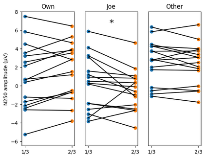 翻译:面部裸露的神经相关神经关系——为新面孔获取记忆表征——仅以粗略的细节研究,而无视学员之间的个人差异。在他们的开创性研究中,(Tanaka、Curran、Porterfield和Collins,2006年)需要查明70个试验中的某一特定新面孔,发现企业资源规划中的N250部分从试验的上半部到下半部变得更为负面,在试验中,它达到一个众所周知的表情。当我们使用最初的分解试验时,我们无法直接复制我们的研究中的这一发现。然而,当我们使用不同的分解试验时,我们观察到了N250度变化非常相似的变化。随后,我们开发并应用了一个新的两步调异的共性非分辨方法,在70个试验中,我们发现,根据一次试验的第一至下方的表情显示,单个参与者的面部相向下方的面部位开始急剧上升,从最初的面部位向前方位调整,到最前方的直线性趋势在最初的阶段形成更接近。