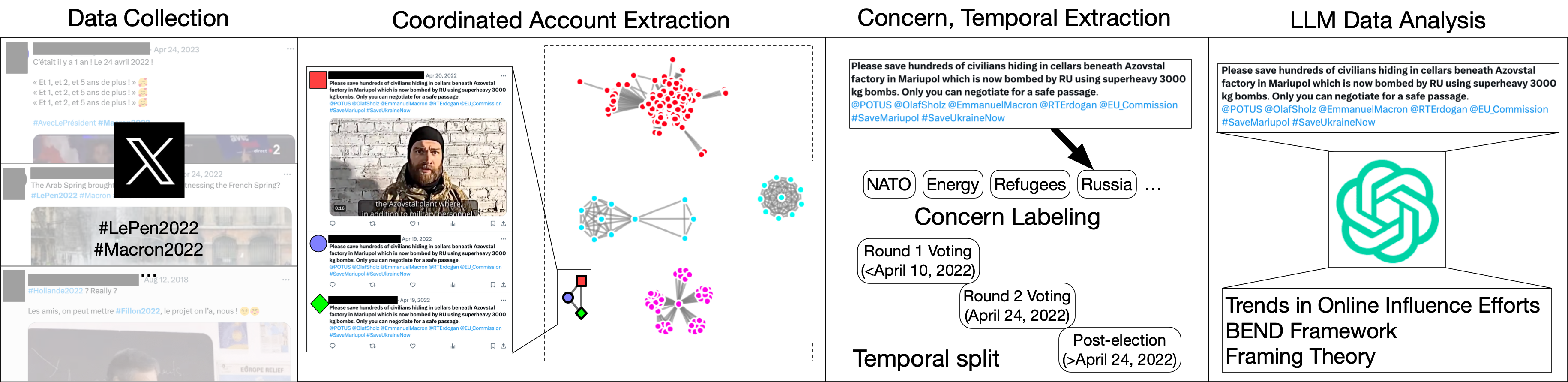 Adversarial information operations can destabilize societies by undermining fair elections, manipulating public opinions on policies, and promoting scams. Despite their widespread occurrence and potential impacts, our understanding of influence campaigns is limited by manual analysis of messages and subjective interpretation of their observable behavior. In this paper, we explore whether these limitations can be mitigated with large language models (LLMs), using GPT-3.5 as a case-study for coordinated campaign annotation. We first use GPT-3.5 to scrutinize 126 identified information operations spanning over a decade. We utilize a number of metrics to quantify the close (if imperfect) agreement between LLM and ground truth descriptions. We next extract coordinated campaigns from two large multilingual datasets from X (formerly Twitter) that respectively discuss the 2022 French election and 2023 Balikaran Philippine-U.S. military exercise in 2023. For each coordinated campaign, we use GPT-3.5 to analyze posts related to a specific concern and extract goals, tactics, and narrative frames, both before and after critical events (such as the date of an election). While the GPT-3.5 sometimes disagrees with subjective interpretation, its ability to summarize and interpret demonstrates LLMs' potential to extract higher-order indicators from text to provide a more complete picture of the information campaigns compared to previous methods.