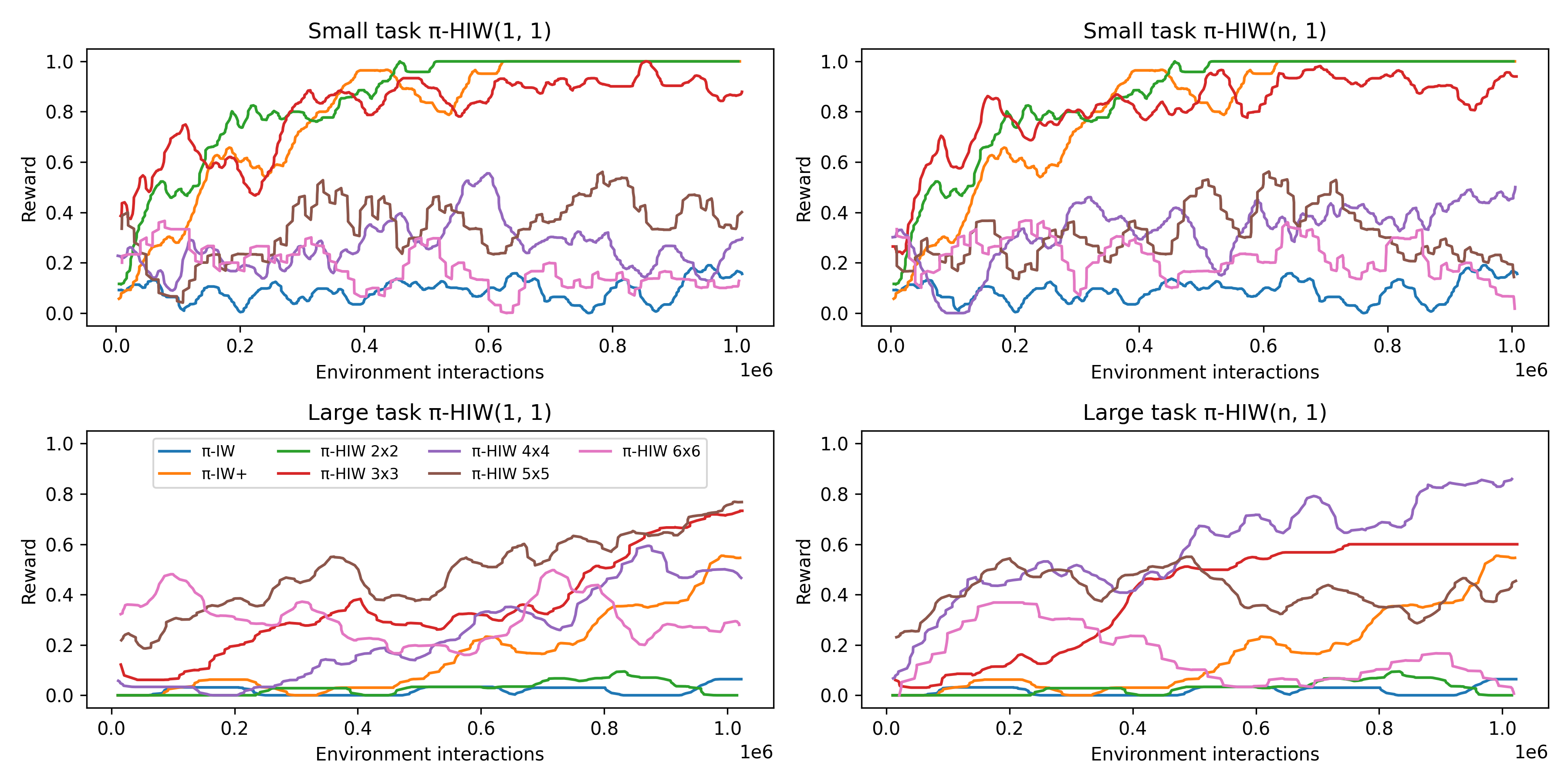 翻译:基于宽度大于1的算法在计算上难以操作,禁止IW解决较高宽度的问题。在本文中,我们展示了一种分级算法,在两个层次上计划抽取。高层次规划员使用从低层次裁剪决定中逐渐发现的抽象特征。我们在经典规划 PDDL 域和以像素模拟器域中演示了这种算法。在经典规划中,我们展示了两种程度的抽象电算法如何解决宽度问题。2 在像素域中,我们展示了如何与一项学习的政策和一个学习的值函数相结合,拟议的等级IW可以比目前阿塔里游戏中以平板 IDDL 为基础的规划者少得分。