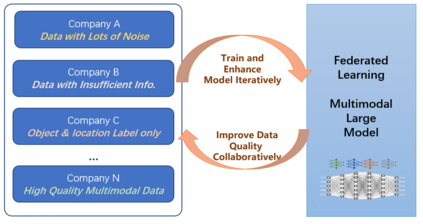 Multimodal data, which can comprehensively perceive and recognize the physical world, has become an essential path towards general artificial intelligence. However, multimodal large models trained on public datasets often underperform in specific industrial domains. This paper proposes a multimodal federated learning framework that enables multiple enterprises to utilize private domain data to collaboratively train large models for vertical domains, achieving intelligent services across scenarios. The authors discuss in-depth the strategic transformation of federated learning in terms of intelligence foundation and objectives in the era of big model, as well as the new challenges faced in heterogeneous data, model aggregation, performance and cost trade-off, data privacy, and incentive mechanism. The paper elaborates a case study of leading enterprises contributing multimodal data and expert knowledge to city safety operation management , including distributed deployment and efficient coordination of the federated learning platform, technical innovations on data quality improvement based on large model capabilities and efficient joint fine-tuning approaches. Preliminary experiments show that enterprises can enhance and accumulate intelligent capabilities through multimodal model federated learning, thereby jointly creating an smart city model that provides high-quality intelligent services covering energy infrastructure safety, residential community security, and urban operation management. The established federated learning cooperation ecosystem is expected to further aggregate industry, academia, and research resources, realize large models in multiple vertical domains, and promote the large-scale industrial application of artificial intelligence and cutting-edge research on multimodal federated learning.