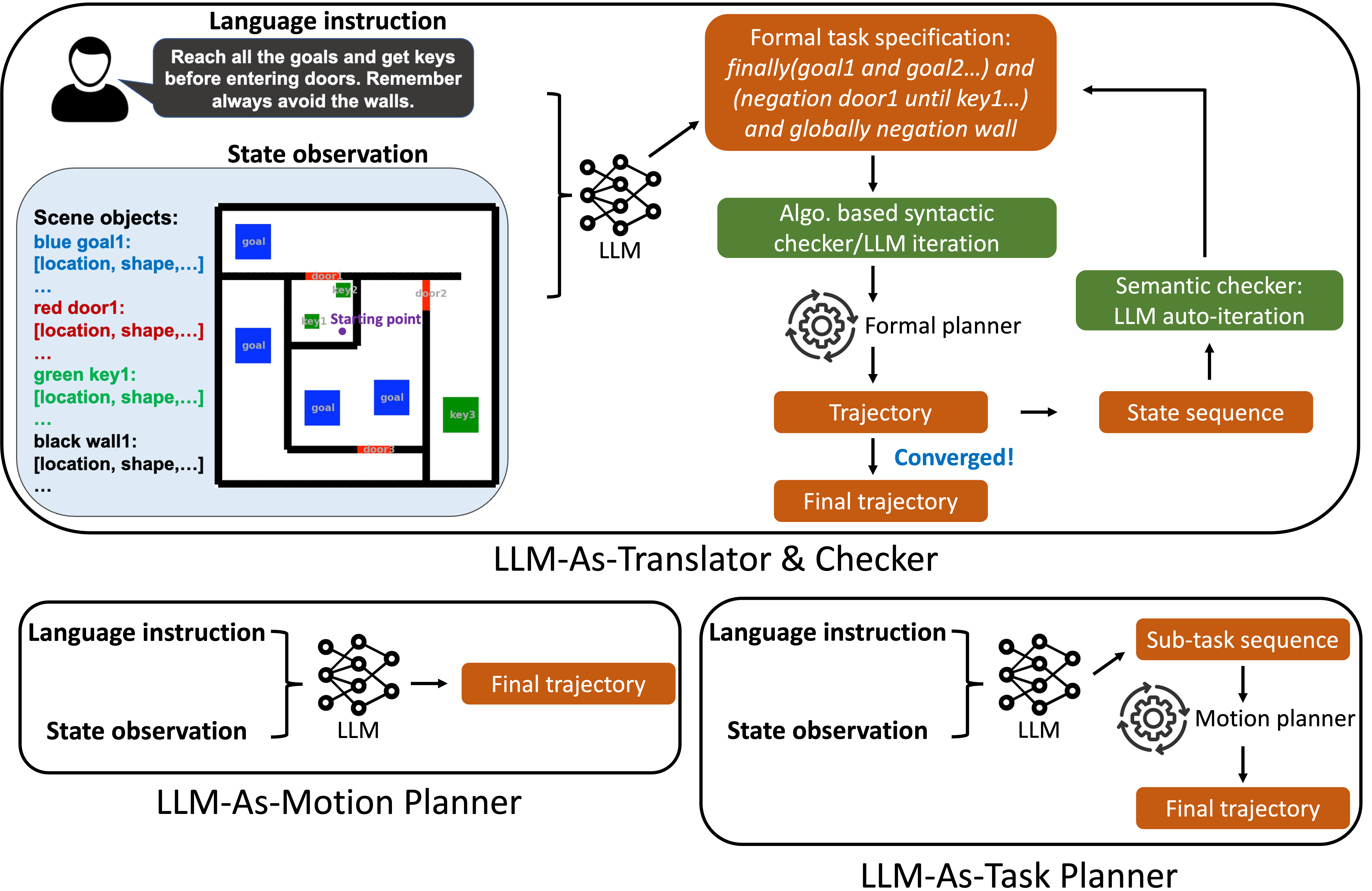 For effective human-robot interaction, robots need to understand, plan, and execute complex, long-horizon tasks described by natural language. Recent advances in large language models (LLMs) have shown promise for translating natural language into robot action sequences for complex tasks. However, existing approaches either translate the natural language directly into robot trajectories or factor the inference process by decomposing language into task sub-goals and relying on a motion planner to execute each sub-goal. When complex environmental and temporal constraints are involved, inference over planning tasks must be performed jointly with motion plans using traditional task-and-motion planning (TAMP) algorithms, making factorization into subgoals untenable. Rather than using LLMs to directly plan task sub-goals, we instead perform few-shot translation from natural language task descriptions to an intermediate task representation that can then be consumed by a TAMP algorithm to jointly solve the task and motion plan. To improve translation, we automatically detect and correct both syntactic and semantic errors via autoregressive re-prompting, resulting in significant improvements in task completion. We show that our approach outperforms several methods using LLMs as planners in complex task domains. See our project website https://yongchao98.github.io/MIT-REALM-AutoTAMP/ for prompts, videos, and code.
