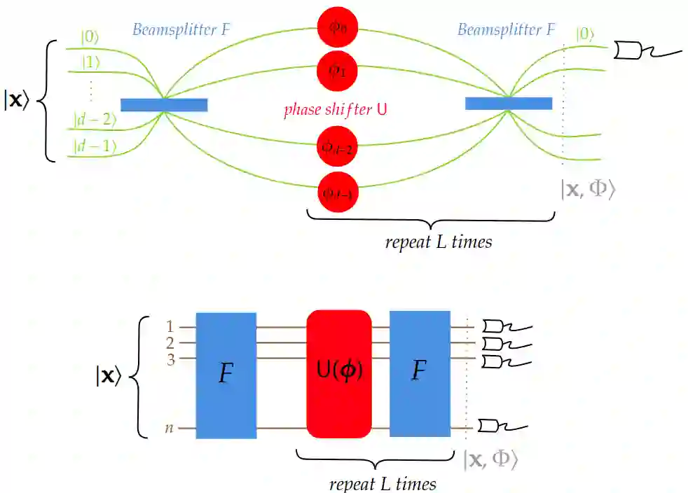 On the one hand, artificial neural networks have many successful applications in the field of machine learning and optimization. On the other hand, interferometers are integral parts of any field that deals with waves such as optics, astronomy, and quantum physics. Here, we introduce neural networks composed of interferometers and then build generative adversarial networks from them. Our networks do not have any classical layer and can be realized on quantum computers or photonic chips. We demonstrate their applicability for combinatorial optimization, image classification, and image generation. For combinatorial optimization, our network consistently converges to the global optimum or remains within a narrow range of it. In multi-class image classification tasks, our networks achieve accuracies of 93% and 83%. Lastly, we show their capability to generate images of digits from 0 to 9 as well as human faces.