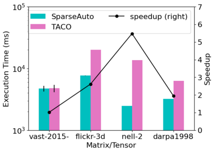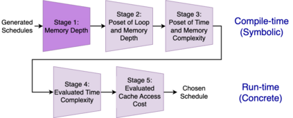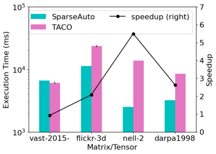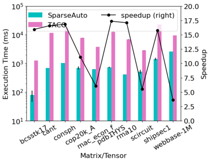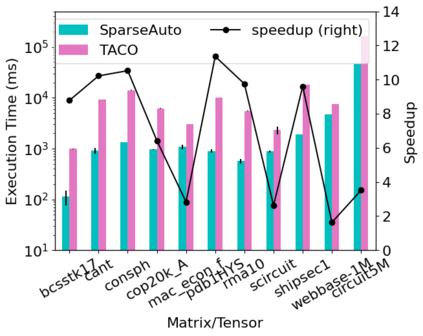 Automated code generation and performance optimizations for sparse tensor algebra are cardinal since they have become essential in many real-world applications like quantum computing, physics, chemistry, and machine learning. General sparse tensor algebra compilers are not always versatile enough to generate asymptotically optimal code for sparse tensor contractions. This paper shows how to optimize and generate asymptotically better schedules for complex tensor expressions using kernel fission and fusion. We present a generalized loop transformation to achieve loop nesting for minimized memory footprint and reduced asymptotic complexity. Furthermore, we present an auto-scheduler that uses a partially ordered set-based cost model that uses both time and auxiliary memory complexities in its pruning stages. In addition, we highlight the use of SMT solvers in sparse auto-schedulers to prune the Pareto frontier of schedules to the smallest number of possible schedules with user-defined constraints available at compile time. Finally, we show that our auto-scheduler can select asymptotically better schedules that use our compiler transformation to generate optimized code. Our results show that the auto-scheduler achieves orders of magnitude speedup compared to the TACO-generated code for several real-world tensor algebra computations on different real-world inputs.