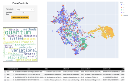 Highly specific datasets of scientific literature are important for both research and education. However, it is difficult to build such datasets at scale. A common approach is to build these datasets reductively by applying topic modeling on an established corpus and selecting specific topics. A more robust but time-consuming approach is to build the dataset constructively in which a subject matter expert (SME) handpicks documents. This method does not scale and is prone to error as the dataset grows. Here we showcase a new tool, based on machine learning, for constructively generating targeted datasets of scientific literature. Given a small initial "core" corpus of papers, we build a citation network of documents. At each step of the citation network, we generate text embeddings and visualize the embeddings through dimensionality reduction. Papers are kept in the dataset if they are "similar" to the core or are otherwise pruned through human-in-the-loop selection. Additional insight into the papers is gained through sub-topic modeling using SeNMFk. We demonstrate our new tool for literature review by applying it to two different fields in machine learning.