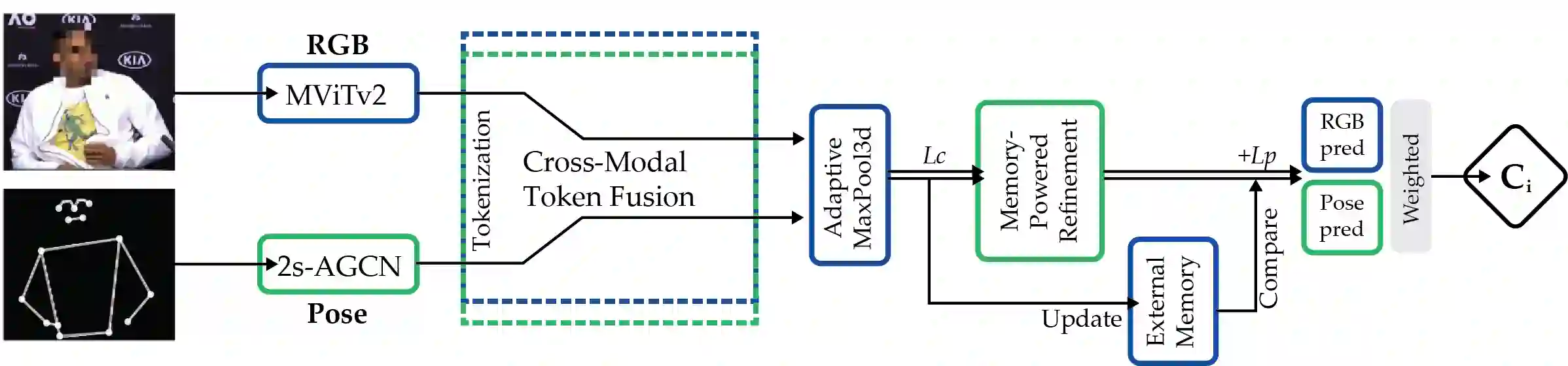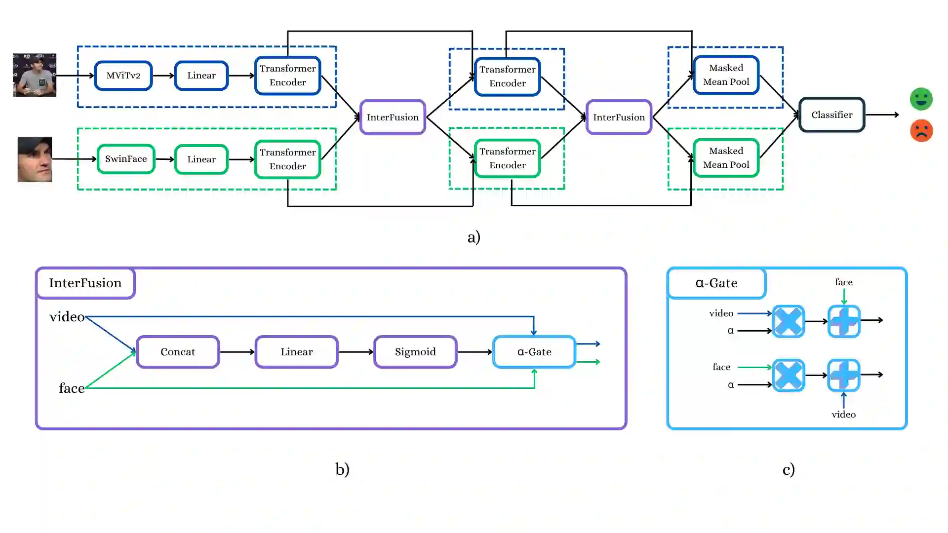 翻译:微手势识别与基于行为的情感预测均是极具挑战性的任务,它们需要对细微、精细的人类行为进行建模,主要利用视频和骨骼姿态数据。在本工作中,我们提出了两种多模态框架,旨在解决iMiGUE数据集上的这两个问题。针对微手势分类,我们探索了RGB与基于3D姿态的表征之间的互补优势,以捕捉细微的时空模式。为了全面表征手势,分别使用MViTv2-S和2s-AGCN提取视频和骨骼嵌入。随后,通过跨模态令牌融合模块将它们集成,以结合空间与姿态信息。对于情感识别,我们的框架扩展到基于行为的情感预测,这是一个基于视觉线索识别情感状态的二分类任务。我们利用SwinFace和MViTv2-S模型提取的面部与上下文嵌入,并通过一个旨在捕捉情感表达与身体手势的InterFusion模块进行融合。在MiGA 2025挑战赛范围内,于iMiGUE数据集上进行的实验证明了我们的方法在基于行为的情感预测任务中具有鲁棒的性能与准确性,我们的方法在该任务中获得了第二名。