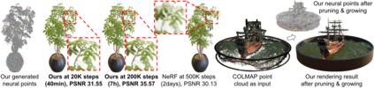 翻译:NeRF 等体积神经转换方法产生高质量的合成合成结果,但每层都得到优化,从而导致无法承受的重建时间。另一方面,深多视立体方法可以通过直接的网络推断迅速重建场景几何。Point-NeRF 利用神经3D点云和相关的神经特征将这两种方法的优点结合起来,以模拟一个亮度场。点-NERF 可以通过在以射向为基础的铺设管道中将近表面的神经点特征集成成,从而有效地实现。此外,点-NERF 可以通过直接推断预先训练的深层网络产生一个神经点云来初始化;这个点云可以调整,以超过NERF的视觉质量,使用30X更快的培训时间。点-NERF可以与其他3D重建方法相结合,并通过新编程和成长机制处理这些方法中的错误和外值。