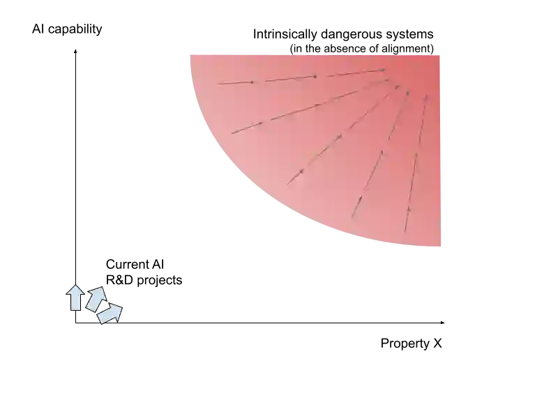 Concerns around future dangers from advanced AI often centre on systems hypothesised to have intrinsic characteristics such as agent-like behaviour, strategic awareness, and long-range planning. We label this cluster of characteristics as "Property X". Most present AI systems are low in "Property X"; however, in the absence of deliberate steering, current research directions may rapidly lead to the emergence of highly capable AI systems that are also high in "Property X". We argue that "Property X" characteristics are intrinsically dangerous, and when combined with greater capabilities will result in AI systems for which safety and control is difficult to guarantee. Drawing on several scholars' alternative frameworks for possible AI research trajectories, we argue that most of the proposed benefits of advanced AI can be obtained by systems designed to minimise this property. We then propose indicators and governance interventions to identify and limit the development of systems with risky "Property X" characteristics.