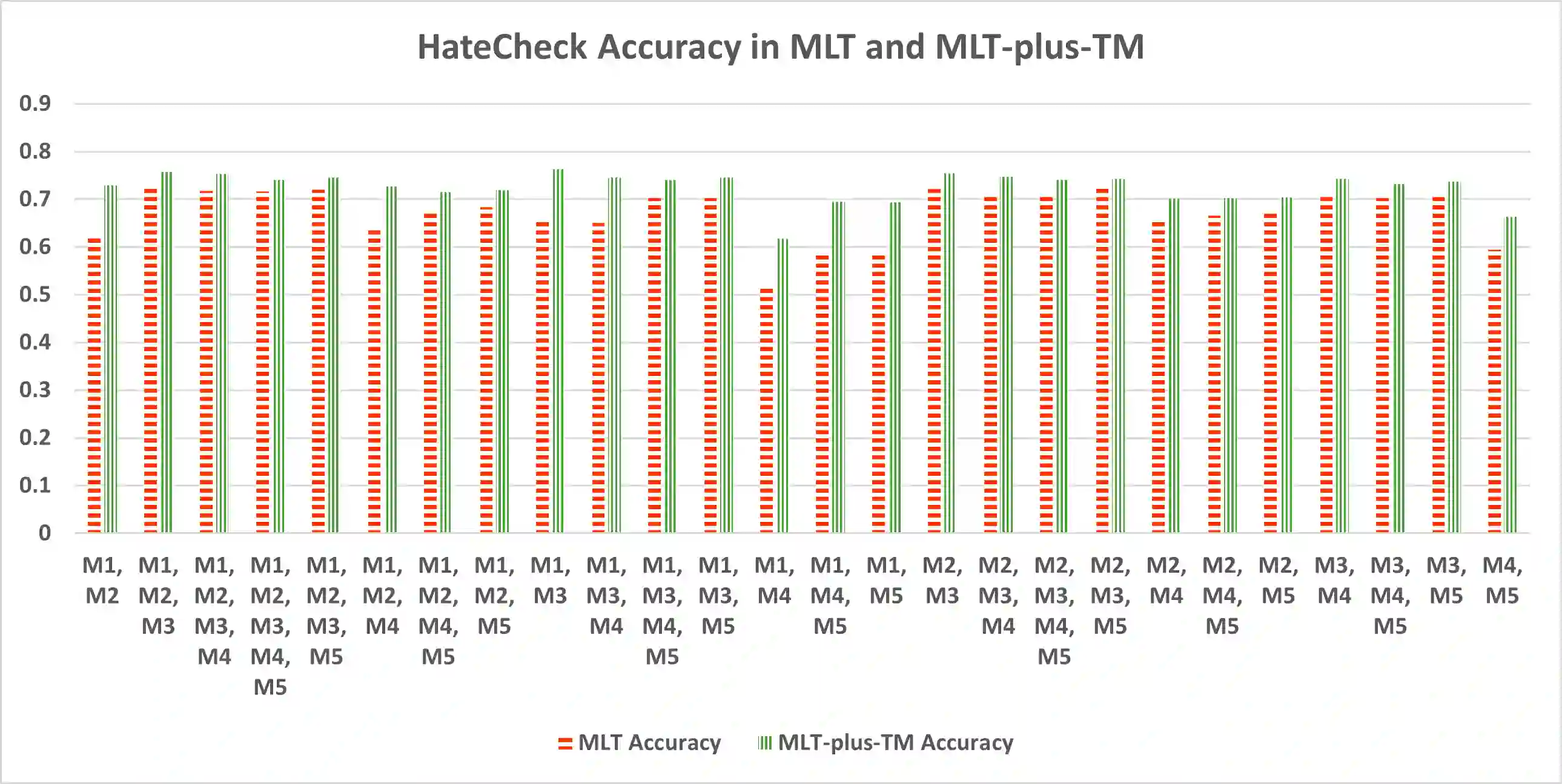 Detecting out of policy speech (OOPS) content is important but difficult. While machine learning is a powerful tool to tackle this challenging task, it is hard to break the performance ceiling due to factors like quantity and quality limitations on training data and inconsistencies in OOPS definition and data labeling. To realize the full potential of available limited resources, we propose a meta learning technique (MLT) that combines individual models built with different text representations. We analytically show that the resulting technique is numerically stable and produces reasonable combining weights. We combine the MLT with a threshold-moving (TM) technique to further improve the performance of the combined predictor on highly-imbalanced in-distribution and out-of-distribution datasets. We also provide computational results to show the statistically significant advantages of the proposed MLT approach. All authors contributed equally to this work.
