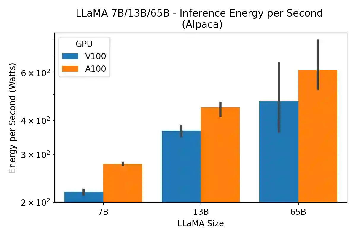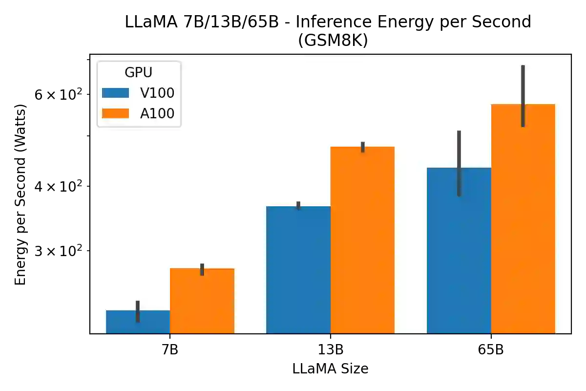 Large language models (LLMs) have exploded in popularity due to their new generative capabilities that go far beyond prior state-of-the-art. These technologies are increasingly being leveraged in various domains such as law, finance, and medicine. However, these models carry significant computational challenges, especially the compute and energy costs required for inference. Inference energy costs already receive less attention than the energy costs of training LLMs -- despite how often these large models are called on to conduct inference in reality (e.g., ChatGPT). As these state-of-the-art LLMs see increasing usage and deployment in various domains, a better understanding of their resource utilization is crucial for cost-savings, scaling performance, efficient hardware usage, and optimal inference strategies. In this paper, we describe experiments conducted to study the computational and energy utilization of inference with LLMs. We benchmark and conduct a preliminary analysis of the inference performance and inference energy costs of different sizes of LLaMA -- a recent state-of-the-art LLM -- developed by Meta AI on two generations of popular GPUs (NVIDIA V100 \& A100) and two datasets (Alpaca and GSM8K) to reflect the diverse set of tasks/benchmarks for LLMs in research and practice. We present the results of multi-node, multi-GPU inference using model sharding across up to 32 GPUs. To our knowledge, our work is the one of the first to study LLM inference performance from the perspective of computational and energy resources at this scale.