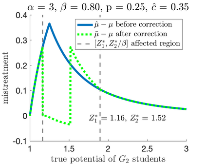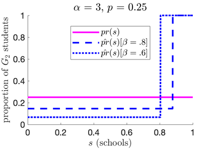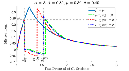 翻译:传统上,纽约市排名前8的公立学校只根据他们在专门高中招生考试(SHSAT)中的得分来挑选候选人。据知,这些得分受到学生的社会经济地位和在“养婴”中学接受的考试准备的影响,导致教育管道的大规模过滤效应。例如,纽约市排名前8个的8个公立学校中,约有50%的学生被录取到纽约市最高公立高中,其过滤效应来自中等学校的5%(15%的复数),向学校分配学生的传统机制并不自然解决学校隔离和班级多样性等问题,而这些问题多年来已经恶化。科学界,包括决策者,通过纳入特定群体配额、比例限制或暑期学校机会,作出了反应,但有证据表明,这可能会最终伤害少数群体,甚至造成法律挑战。我们采取完全不同的方法来减少进校中学的这种过滤效应,目的是增加经济需求高学生的机会。我们模拟一个两面的市场,候选人可能无法被看清其真实潜力,因此,甚至被分配到一个低层次的学校。我们用这些高层次的学习机制来评估这些学习成绩。我们用这些成绩来证明这些成绩。