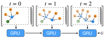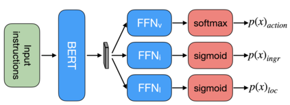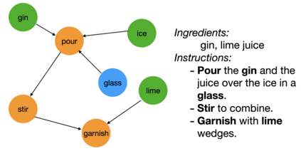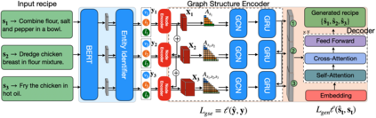 Cooking recipes are one of the most readily available kinds of procedural text. They consist of natural language instructions that can be challenging to interpret. In this paper, we propose a model to identify relevant information from recipes and generate a graph to represent the sequence of actions in the recipe. In contrast with other approaches, we use an unsupervised approach. We iteratively learn the graph structure and the parameters of a $\mathsf{GNN}$ encoding the texts (text-to-graph) one sequence at a time while providing the supervision by decoding the graph into text (graph-to-text) and comparing the generated text to the input. We evaluate the approach by comparing the identified entities with annotated datasets, comparing the difference between the input and output texts, and comparing our generated graphs with those generated by state of the art methods.