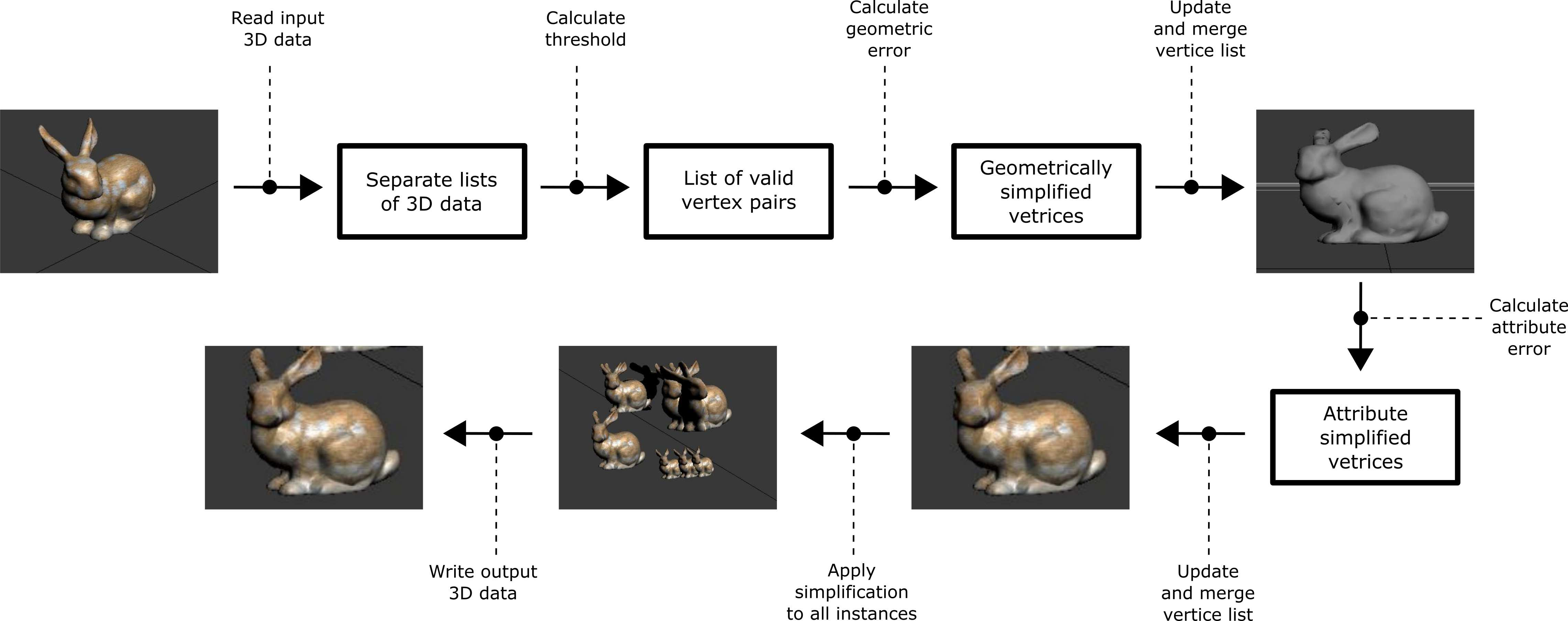 翻译:3D图形和图形世界的演变带来了诸如内容优化、实时处理、制作和共享存储限制等问题。一般而言,采用不同的简化方法使 3D 模件能够生成。 但是,许多这类方法忽略了顶点属性,例如 3D 模件。 在本文件中,我们实施并评价一个简单和改良的版本,以简化实例3D 纹理模型。该方法除了使用几何外,还使用不同的顶点属性来简化网状实例。由此产生的简化模型显示了高效的时间空间要求和更好的视觉质量。