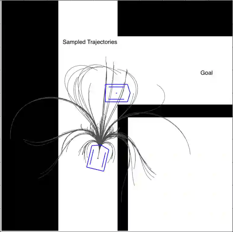 翻译:我们提出了一种在复杂动态环境中使用模型预测平衡点控制的安全机器人导航算法的优化形式。我们在每个时间步上通过优化轨迹成本函数来优雅地导航机器人在动态环境中,我们提出了一种新颖的轨迹成本公式,显著降低保守和死锁行为,并生成平滑的轨迹。特别地,我们提出了一种新的碰撞概率函数,有效捕捉给定配置和速度方向的碰撞风险和避免碰撞的时间。此外,我们提出了一个基于预期到达时间和避免进入死锁状态的末态成本,可以帮助避免导致死锁的轨迹。我们在多个模拟和真实场景下评估了我们的成本公式,包括带动态障碍物的狭窄走廊,并观察到与先前方法相比,显著提高了导航行为并减少了死锁。