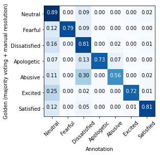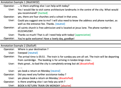 翻译:认识情感的能力使人能够理解一种对话的人工智能。虽然在聊天对话中,情绪受到大量关注,但任务导向对话中的情绪尽管具有同样重要的作用,例如信号失败或成功,但基本上被忽略。现有的情绪附加说明的任务导向团体在规模、标签丰富性和公众可用性方面都有限,为下游任务制造瓶颈。为了在任务导向的对话中为情感研究奠定基础,我们引入了EmoWOZ,这是一个大规模人工情感附加说明式任务导向对话的集合。EmoWOZ以多功能面向任务的对话数据集为基础。它包含超过11K的对话,其用户语气说明超过83K。除了来自多功能团队的Wizard-Ozz对话之外,我们还收集了同一系列的人类机器对话,以充分覆盖在数据驱动的对话系统存续期间可能发生的各种情感空间。我们最了解的是,这是其同类对话的第一个大规模开源数据集。我们提议了一种面向情感导向性对话的新任务定位,我们提出了一种面向感官对话的定位系统。我们将一个面向感官感官对话的跟踪性任务定位,以展示我们的任务定位为目的。