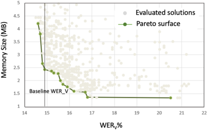 翻译:压缩深层次学习模型对于将此类模型应用到边缘设备至关重要。 压缩参数的选择可以自动化, 以适应硬件平台和应用程序使用优化算法的变化。 文章采用了多目标硬件软件软件量化( MOHAQ) 方法, 将硬件效率和推断错误视为混合精度分化的目标。 拟议的方法可以依靠两个步骤在大型搜索空间对候选解决方案进行实际评估。 首先, 培训后量化应用到快速解决方案评估( 仅进行 仅进行 简单搜索 ) 。 其次, 我们建议“ 以 Beacon 为基础搜索”, 仅对选定的解决方案进行再培训, 并将其作为灯塔, 以了解再培训对其它解决方案的影响。 我们使用基于简单常规单元( SRU) 的语音识别模型, 并使用我们的方法在 SiLago 和 Bituncult 平台上运行。 我们提供的实验性评估表明, 通过培训后量化量化可压缩到 8x, 而不增加任何重大错误 。 在 SiLago, 我们找到了一些解决方案, 以 以 将 降级搜索速度递增到 Basil 速度 和 86 递增 至 中 中 最大化 。