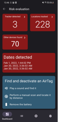 翻译:寻找者网络,特别是苹果发现我网络,如果这些网络被滥用于跟踪跟踪,则会对用户隐私甚至健康构成严重威胁。苹果公司释放AirTag这个几乎无处不在的寻找我网络覆盖的非常廉价的追踪器,这放大了这一问题。虽然苹果公司在其生态系统中提供了一个跟踪检测特征,数十亿Android用户仍然留在黑暗中。苹果公司最近发布了Android App“Tracker 探测器”,这并没有为跟踪保护提供令人信服的特征。我们逆转了工程师苹果公司在iOS的跟踪保护,并讨论了其跟踪检测特征。我们设计了“AirGuard”并把它作为Android App来保护不受苹果跟踪装置的滥用。我们用数万个活跃用户提供的数据将我们解决方案的绩效与苹果公司在iOS中提供的应用程序进行比较,并用数周的时间研究AirGuard在野外的使用情况。