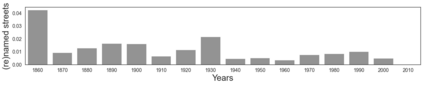 翻译:量化一个社会的价值体系很重要, 因为它能说明人们深为关心的是什么 -- 它能反映他们实际上是谁,更重要的是,他们愿意成为谁。 这种文化量化通常通过研究文学作品来完成。 但是,一个社会的价值体系很可能根据人们过去作出的决定和他们关心的事物所调解的决定而暗含地量化。 事实证明,这些决定中有一类是在普通环境中可见的: 它在街道名称中可见。 我们研究了巴黎、维也纳、伦敦和纽约城市4 932个荣誉街道的名称。 我们选择这四个城市是因为它们是20世纪西方世界重要的文化影响中心。 我们发现,街道名称在很大程度上反映了社会存在性别偏见的程度,这些职业被视为精英,以及城市受世界其他地方影响的程度。 以这种方式量化社会的价值体系承诺在数字人类学中提供新的方法信息; 使得各城市能够反思其过去,以便了解其未来; 并告知如何设计日常教育工具,以增进历史意识,从而在游戏中提高历史意识。