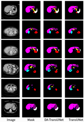Accurate medical image segmentation is critical for disease quantification and treatment evaluation. While traditional Unet architectures and their transformer-integrated variants excel in automated segmentation tasks. However, they lack the ability to harness the intrinsic position and channel features of image. Existing models also struggle with parameter efficiency and computational complexity, often due to the extensive use of Transformers. To address these issues, this study proposes a novel deep medical image segmentation framework, called DA-TransUNet, aiming to integrate the Transformer and dual attention block(DA-Block) into the traditional U-shaped architecture. Unlike earlier transformer-based U-net models, DA-TransUNet utilizes Transformers and DA-Block to integrate not only global and local features, but also image-specific positional and channel features, improving the performance of medical image segmentation. By incorporating a DA-Block at the embedding layer and within each skip connection layer, we substantially enhance feature extraction capabilities and improve the efficiency of the encoder-decoder structure. DA-TransUNet demonstrates superior performance in medical image segmentation tasks, consistently outperforming state-of-the-art techniques across multiple datasets. In summary, DA-TransUNet offers a significant advancement in medical image segmentation, providing an effective and powerful alternative to existing techniques. Our architecture stands out for its ability to improve segmentation accuracy, thereby advancing the field of automated medical image diagnostics. The codes and parameters of our model will be publicly available at https://github.com/SUN-1024/DA-TransUnet.