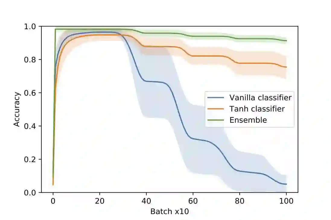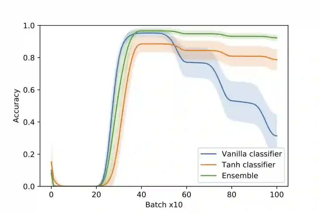 翻译:我们展示了一个在特别困难的环境中持续学习的有效架构,在这种环境中任务界限不存在或未知。我们的架构包括一个编码器,在单独的数据集上预先培训,以及一组简单的单层分类器。需要两项主要创新才能使这种组合发挥作用。首先,由于在自我监督的培训方法方面最近取得的进展,提供了适当的通用的、经过培训的预科解码器。第二,将每个分类器与钥匙配对在一起,关键空间与编码器的潜在空间相同,允许它们被集体、但有选择地使用,通过K最接近的邻居的外观来加以使用。我们显示,经过对编码器和组合结构进行训练的模式是使这种组合发挥作用的最先进的。首先,由于在自我监督的培训方法方面最近取得的进展,提供了适当的通用的、经过预先培训的编码解密的编码器。第二,将每个分类器与钥匙配对在一起,使每个分类器与钥匙空间与编码器的潜在空间完全相同,从而允许它们被集体、但又有选择地使用。我们显示,通过 k- 最接近的邻居的外观的外观来加以使用。我们展示的是,在100个层次上进行自由分配时,我们无法持续地展示它的有效性,在这种结构中学习的任务中,在100个阶段里学习任务中,我们无法显示其持续地展示它是如何在100个层次上学习的任务。