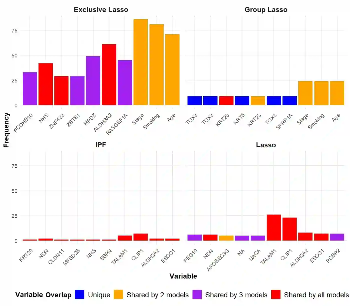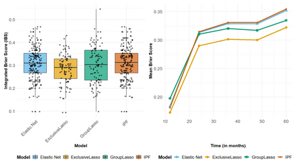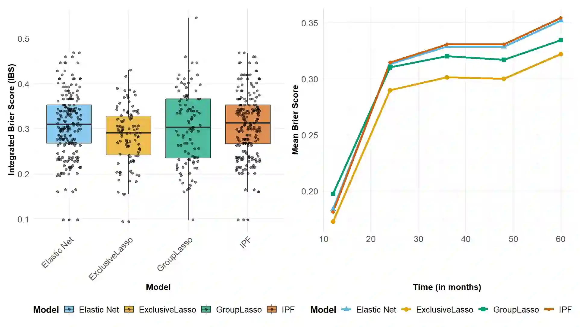 The integration of high-dimensional genomic data and clinical data into time-to-event prediction models has gained significant attention due to the growing availability of these datasets. Traditionally, a Cox regression model is employed, concatenating various covariate types linearly. Given that much of the data may be redundant or irrelevant, feature selection through penalization is often desirable. A notable characteristic of these datasets is their organization into blocks of distinct data types, such as methylation and clinical predictors, which requires selecting a subset of covariates from each group due to high intra-group correlations. For this reason, we propose utilizing Exclusive Lasso regularization in place of standard Lasso penalization. We apply our methodology to a real-life cancer dataset, demonstrating enhanced survival prediction performance compared to the conventional Cox regression model.