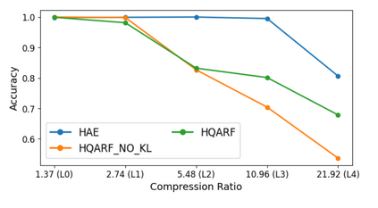 Next-generation cellular concepts rely on the processing of large quantities of radio-frequency (RF) samples. This includes Radio Access Networks (RAN) connecting the cellular front-end based on software defined radios (SDRs) and a framework for the AI processing of spectrum-related data. The RF data collected by the dense RAN radio units and spectrum sensors may need to be jointly processed for intelligent decision making. Moving large amounts of data to AI agents may result in significant bandwidth and latency costs. We propose a deep learned compression (DLC) model, HQARF, based on learned vector quantization (VQ), to compress the complex-valued samples of RF signals comprised of 6 modulation classes. We are assessing the effects of HQARF on the performance of an AI model trained to infer the modulation class of the RF signal. Compression of narrow-band RF samples for the training and off-the-site inference will allow for an efficient use of the bandwidth and storage for non-real-time analytics, and for a decreased delay in real-time applications. While exploring the effectiveness of the HQARF signal reconstructions in modulation classification tasks, we highlight the DLC optimization space and some open problems related to the training of the VQ embedded in HQARF.