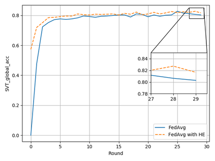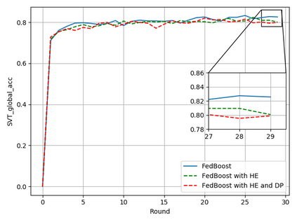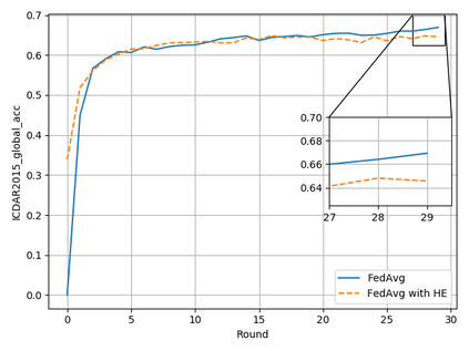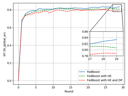 翻译:典型的机器学习方法要求为模型培训提供集中的数据,而由于隐私和梯度保护等原因对数据共享实行限制时,这种数据可能是不可能的。最近提出的联邦学习框架允许在数据拥有者不集中或共享数据的情况下,通过协作学习一个共享模式,而数据拥有者不集中或共享数据。然而,我们在本文中表明,联合模型的概括能力在非独立和非同分布(非二二维)数据方面是差强人意的,特别是在由于权重差异现象而采用联邦挥发(FedAvg)战略时。因此,我们提议为联邦学习框架提供一种创新的加速算法,以解决通用和梯度渗漏问题,并在基于梯度的优化方面实现更快的趋同。此外,还引入了一种安全的梯度共享协议,使用单态加密和差异隐私(DP)来防范梯度泄漏攻击,避免无法测量的对齐加密。我们展示了拟议的联邦推动(FedBologing)方法在公共基准的视觉文本识别任务方面明显地改进了预测准确性和实时效率。