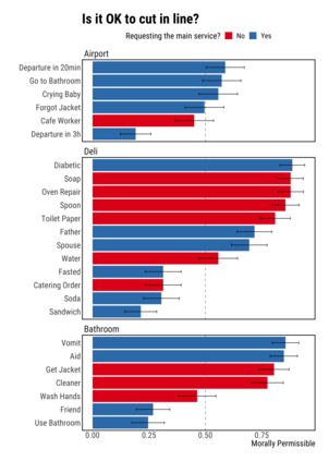 One of the most remarkable things about the human moral mind is its flexibility. We can make moral judgments about cases we have never seen before. We can decide that pre-established rules should be broken. We can invent novel rules on the fly. Capturing this flexibility is one of the central challenges in developing AI systems that can interpret and produce human-like moral judgment. This paper details the results of a study of real-world decision makers who judge whether it is acceptable to break a well-established norm: ``no cutting in line.'' We gather data on how human participants judge the acceptability of line-cutting in a range of scenarios. Then, in order to effectively embed these reasoning capabilities into a machine, we propose a method for modeling them using a preference-based structure, which captures a novel modification to standard ``dual process'' theories of moral judgment.