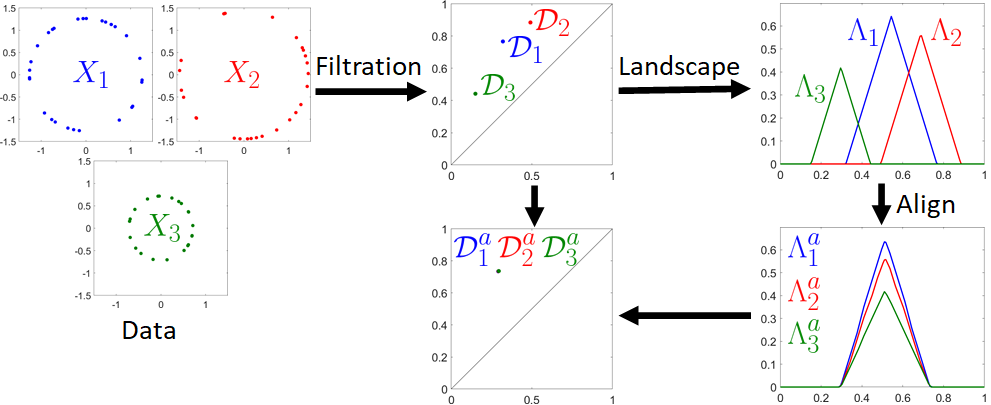 翻译:持久性地貌是持久性地貌的功能性摘要,目的是利用功能性数据分析工具对图进行分析,其中包括一系列标度函数的收集,例如,在耐性图示地图中,地形特征的出生和死亡时间,以延伸功能和间隔,结果,将地形信息编码在持久性地貌的振幅和相位组成部分中。通过弹性里伊曼尼指标对持久性地貌的功能性数据分析,我们通过在振幅和相位变异中脱钩表层景观(例如平均、主要变异方向)的统计性摘要,表明如何通过分解表层和相位变异中的表层特征信号获得有意义的统计性摘要。估计的阶段性功能与确定用于构建持久性地貌图的不精度复合体的分辨率参数挂钩。对于在尺度和取样性易变性下获得的数据集,阶段功能规定了在持久性图中增强表性信号的分辨率参数的最佳增益率。我们通过若干模拟例子和真实的数据示例,展示了以3D点为代表的脑叶树结构的校准效果。