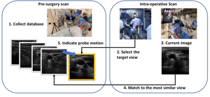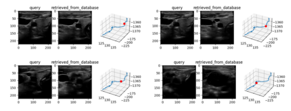 Purpose: Intraoperative ultrasound (US) can enhance real-time visualization in transoral robotic surgery. The surgeon creates a mental map with a pre-operative scan. Then, a surgical assistant performs freehand US scanning during the surgery while the surgeon operates at the remote surgical console. Communicating the target scanning plane in the surgeon's mental map is difficult. Automatic image retrieval can help match intraoperative images to preoperative scans, guiding the assistant to adjust the US probe toward the target plane. Methods: We propose a self-supervised contrastive learning approach to match intraoperative US views to a preoperative image database. We introduce a novel contrastive learning strategy that leverages intra-sweep similarity and US probe location to improve feature encoding. Additionally, our model incorporates a flexible threshold to reject unsatisfactory matches. Results: Our method achieves 92.30% retrieval accuracy on simulated data and outperforms state-of-the-art temporal-based contrastive learning approaches. Our ablation study demonstrates that using probe location in the optimization goal improves image representation, suggesting that semantic information can be extracted from probe location. We also present our approach on real patient data to show the feasibility of the proposed US probe localization system despite tissue deformation from tongue retraction. Conclusion: Our contrastive learning method, which utilizes intra-sweep similarity and US probe location, enhances US image representation learning. We also demonstrate the feasibility of using our image retrieval method to provide neck US localization on real patient US after tongue retraction.
